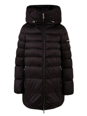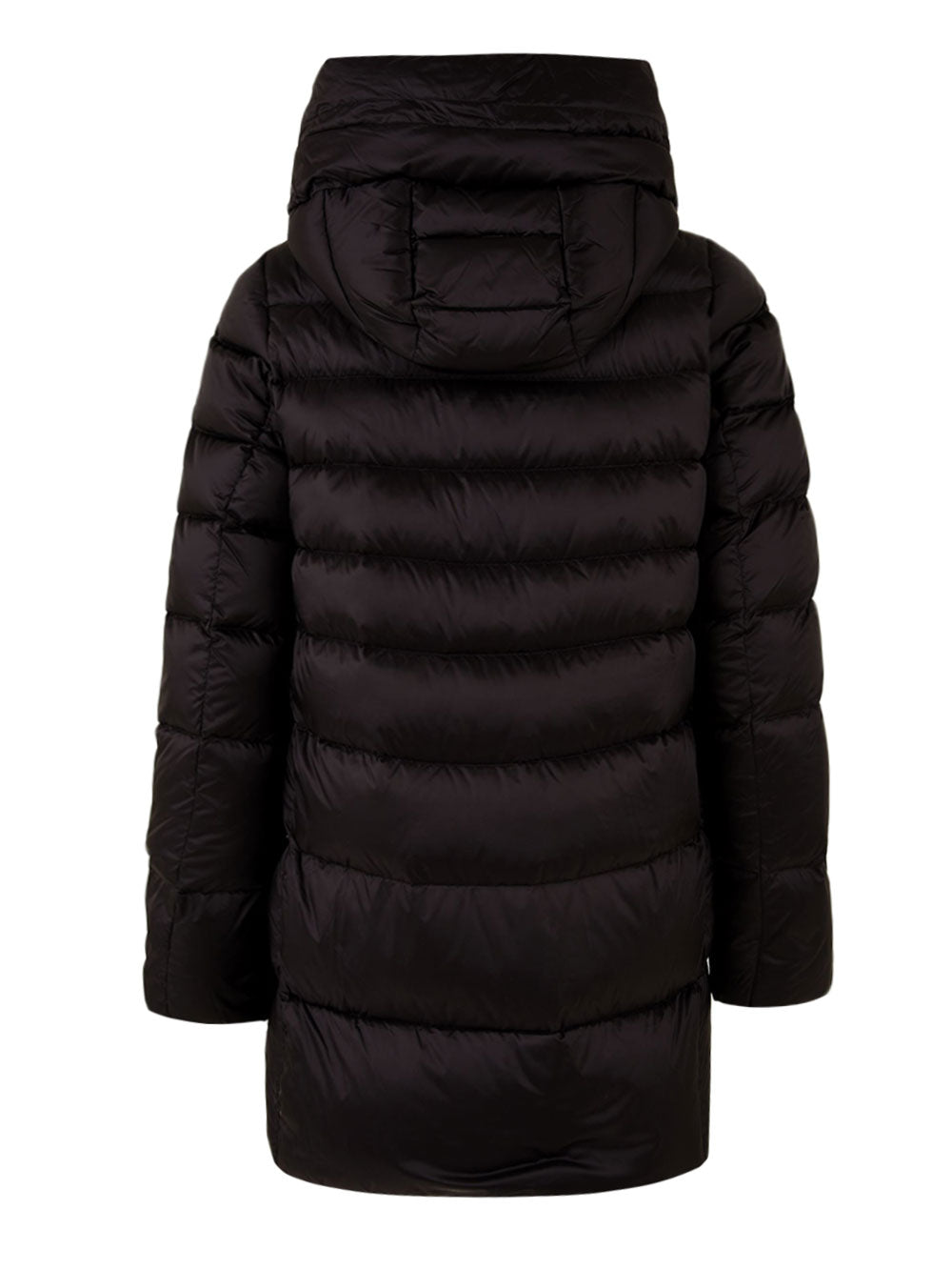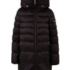Piumino donna a collo alto trapuntato nero con cappuccio