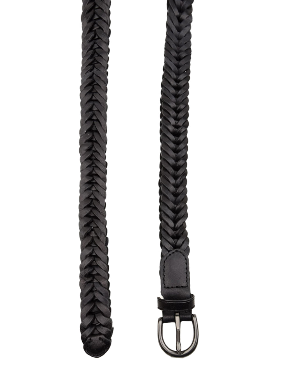 Cintura 2cm Single Link Dragon Diffusion Donna - Nero. Cintura realizzata in 100% pelle, con una larghezza di 2 cm. La struttura è caratterizzata da una maglia singola intrecciata che offre flessibilità e comfort. La silhouette sottile si adatta facilmente ai passanti di pantaloni o gonne, garantendo una tenuta sicura. Il design senza fibbia evidenzia un'estetica minimalista, mentre l'artigianalità del marchio assicura una finitura di alta qualità.