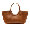 Borsa Nantucket Basket Big 3x Jump Dragon Diffusion Donna - Marrone. Realizzata a mano con intreccio stretto di morbida pelle di bufalo, questa borsa tote presenta un'ampia apertura superiore senza fodera. I manici intrecciati completano la struttura robusta, conferendo una silhouette ampia e funzionale. All'interno, un dettaglio distintivo è il ciondolo con medaglia di San Cristoforo, cucito a mano, che funge da sigillo di autenticità del brand.