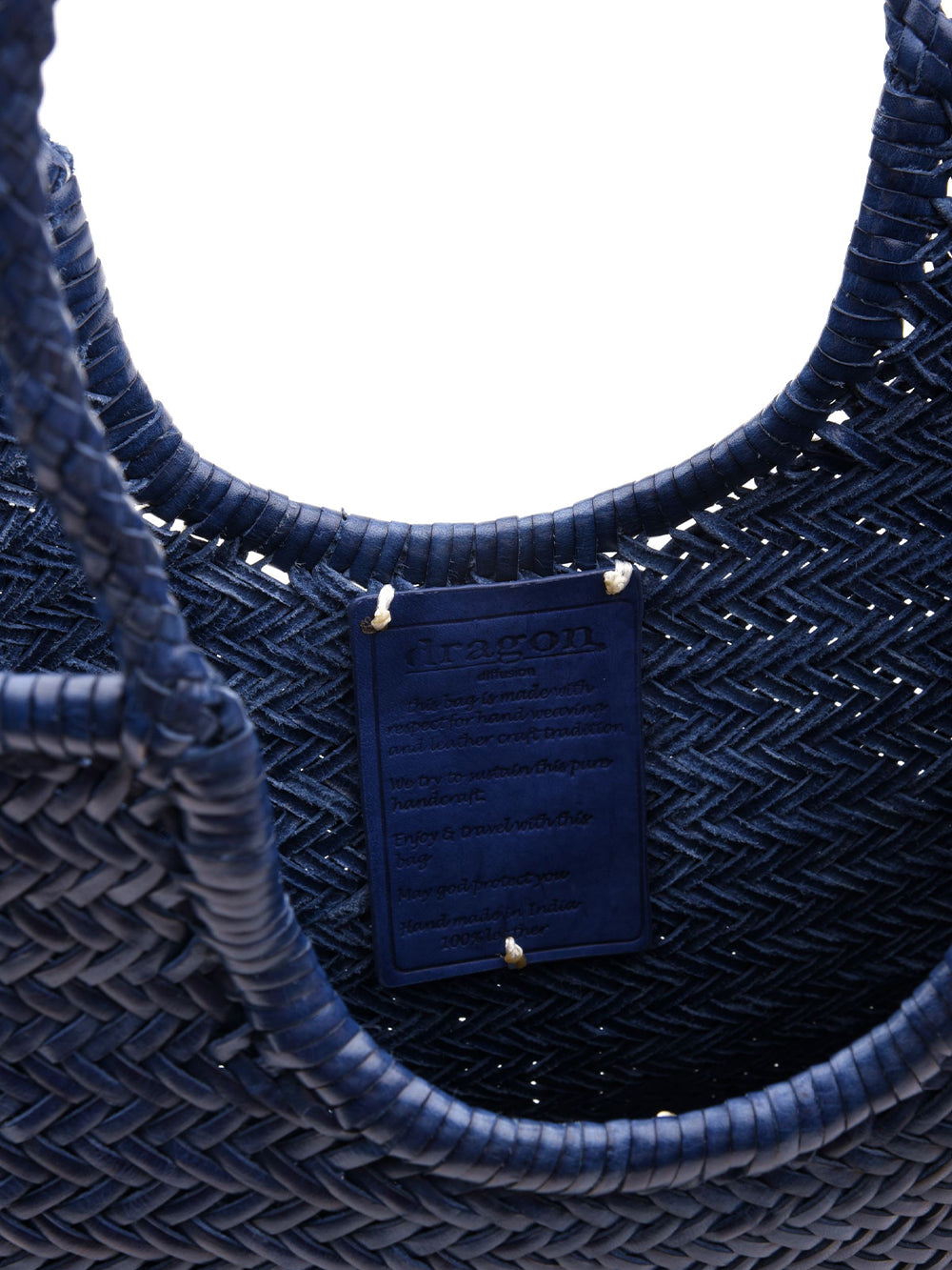Borsa NS Diagonal Triple Jump Arched 4mm Dragon Diffusion Donna - Blue, costruita con materiali intrecciati a mano in pelle, presenta una struttura robusta e una silhouette geometrica ben definita. Il design presenta linee diagonali che conferiscono un aspetto strutturato e funzionale. La borsa offre una capacità interna ottimizzata dalle sue dimensioni complessive, ideale per l'uso quotidiano. Completa di manico superiore, garantisce una presa sicura e comoda.