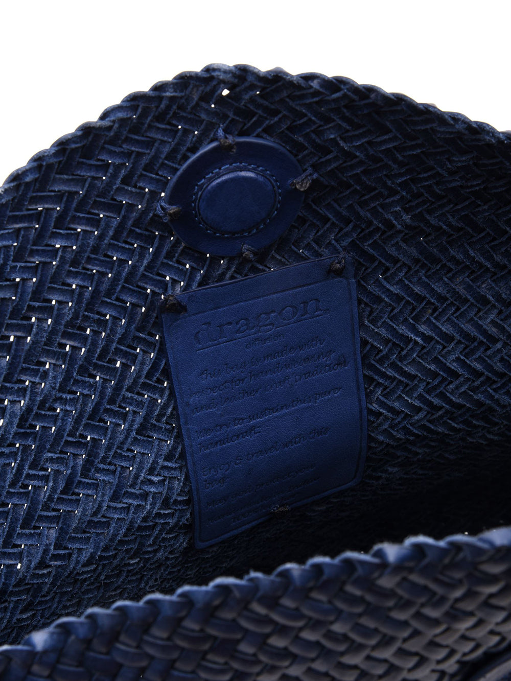 Borsa Santa Marta Diagonal Weave Flap Dragon Diffusion Donna - Blue. Realizzata in pelle di bufalo intrecciata a mano, presenta una trama diagonale da 3.5 mm che conferisce struttura e texture. La chiusura avviene tramite una patta con bottone magnetico, mantenendo un profilo pulito. Il design include una tracolla per indossarla comodamente a spalla o a tracolla, offrendo praticità quotidiana senza compromessi sulla qualità dei materiali.