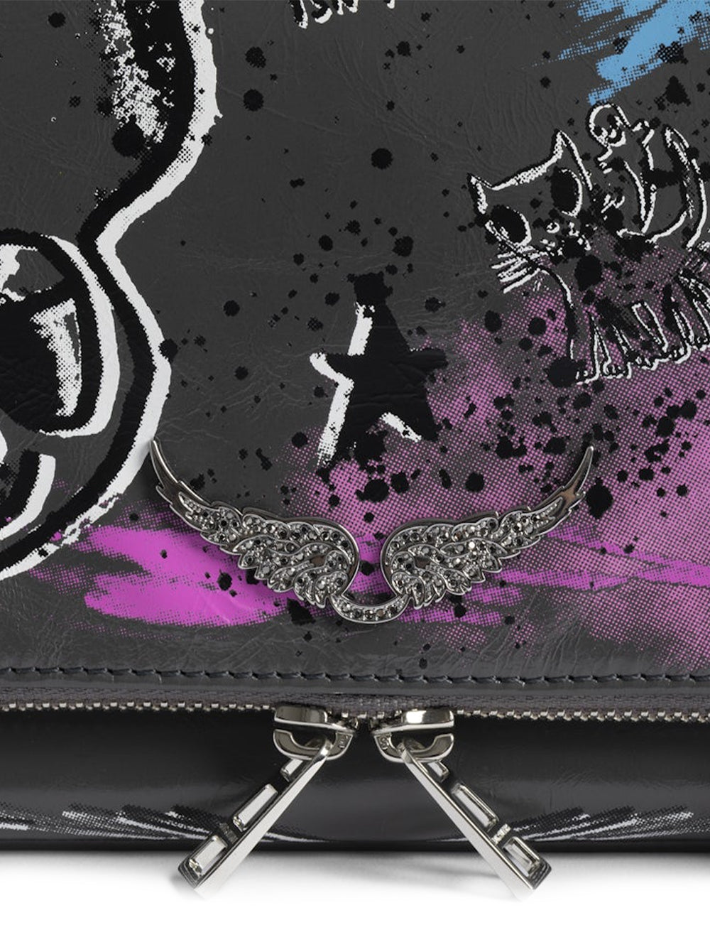 Pochette Rock Humberto Zadig&Voltaire Donna - Nero. Questa pochette è realizzata in pelle granata al 100% di mucca, caratterizzata da una struttura rigida con finitura testurizzata. La chiusura è garantita da una patta con zip e chiusura magnetica. Due catene metalliche rimovibili, intrecciate con pelle, consentono di portare la borsa a mano, a spalla o cross-body. La pochette presenta una firma decorativa con ali ornate di strass. Le dimensioni sono 27 x 13.5 x 2 cm.