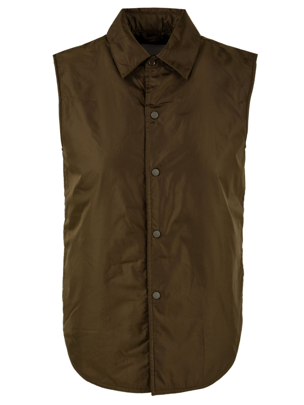 Scopri il gilet smanicato Dot da donna in marrone firmato Aspesi: con chiusura con bottoni a pressione, colletto classico e vestibilità slim. Imbottito con ovatta Thermore di peso medio per un calore ottimale in ogni situazione. Un must-have per sentirti alla moda in ogni occasione!