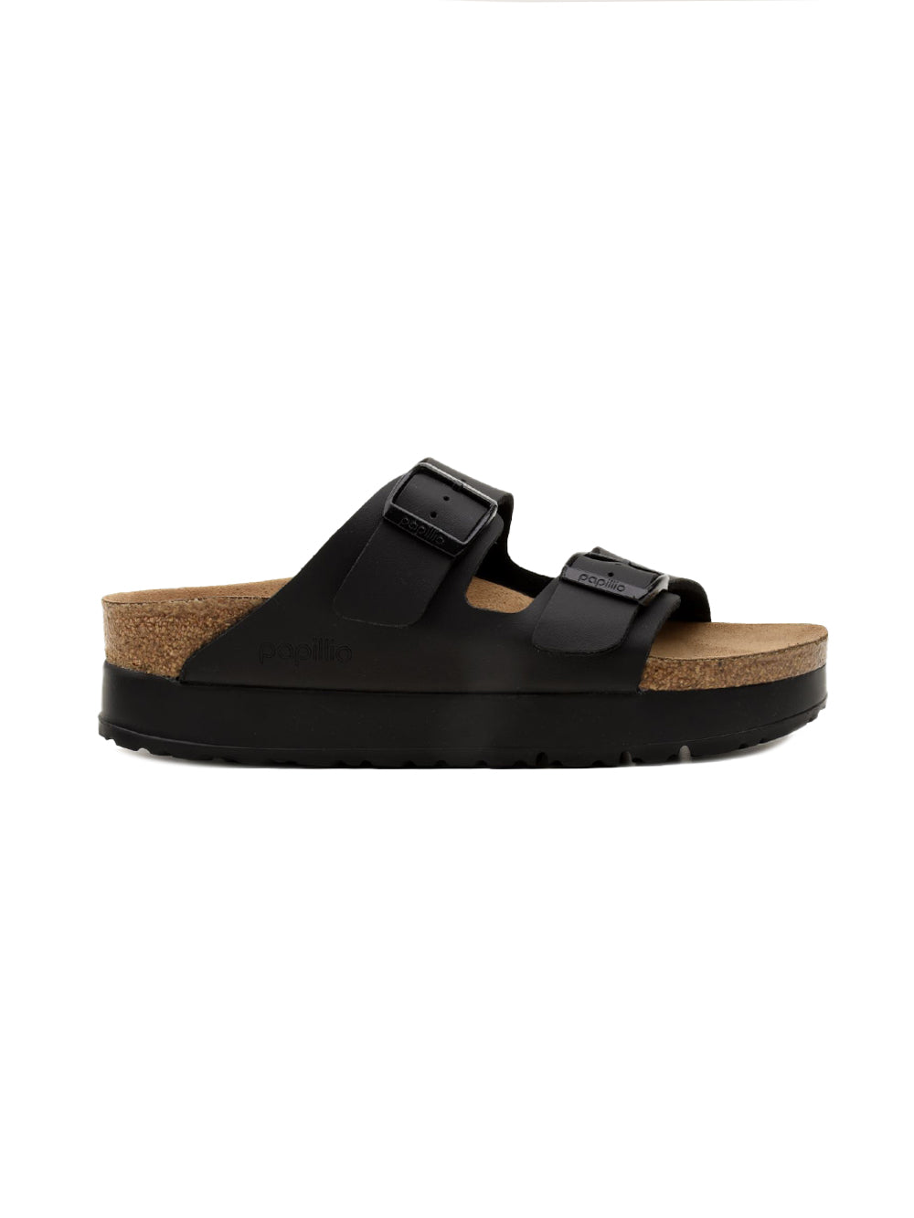 Il sandalo Arizona di Birkenstock, presentato da Papillio, propone un design distintivo con due cinturini funzionali e una zeppa di 25 mm. Costruito con una tomaia in Birko-Flor®, offre resistenza all'usura e un comfort delicato al contatto con la pelle. Il plantare è in sughero e lattice, garantendo un supporto anatomico, mentre la suola è in EVA, materiale noto per la sua leggerezza e ammortizzazione. L'intera produzione è realizzata senza parti di origine animale.