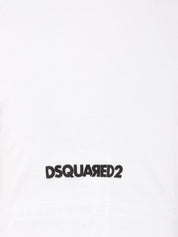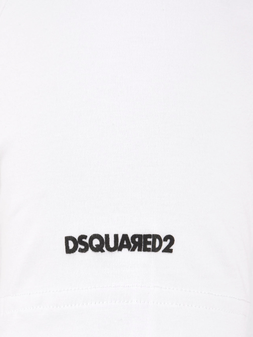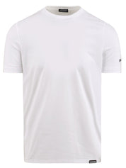 Migliora il tuo stile con la T-shirt bianca da uomo in cotone firmata Dsquared2! Con girocollo e maniche corte, è versatile e ideale per i giorni caldi e il logo nero sulla manica sinistra dona un tocco di stile adatto ad ogni occasione.