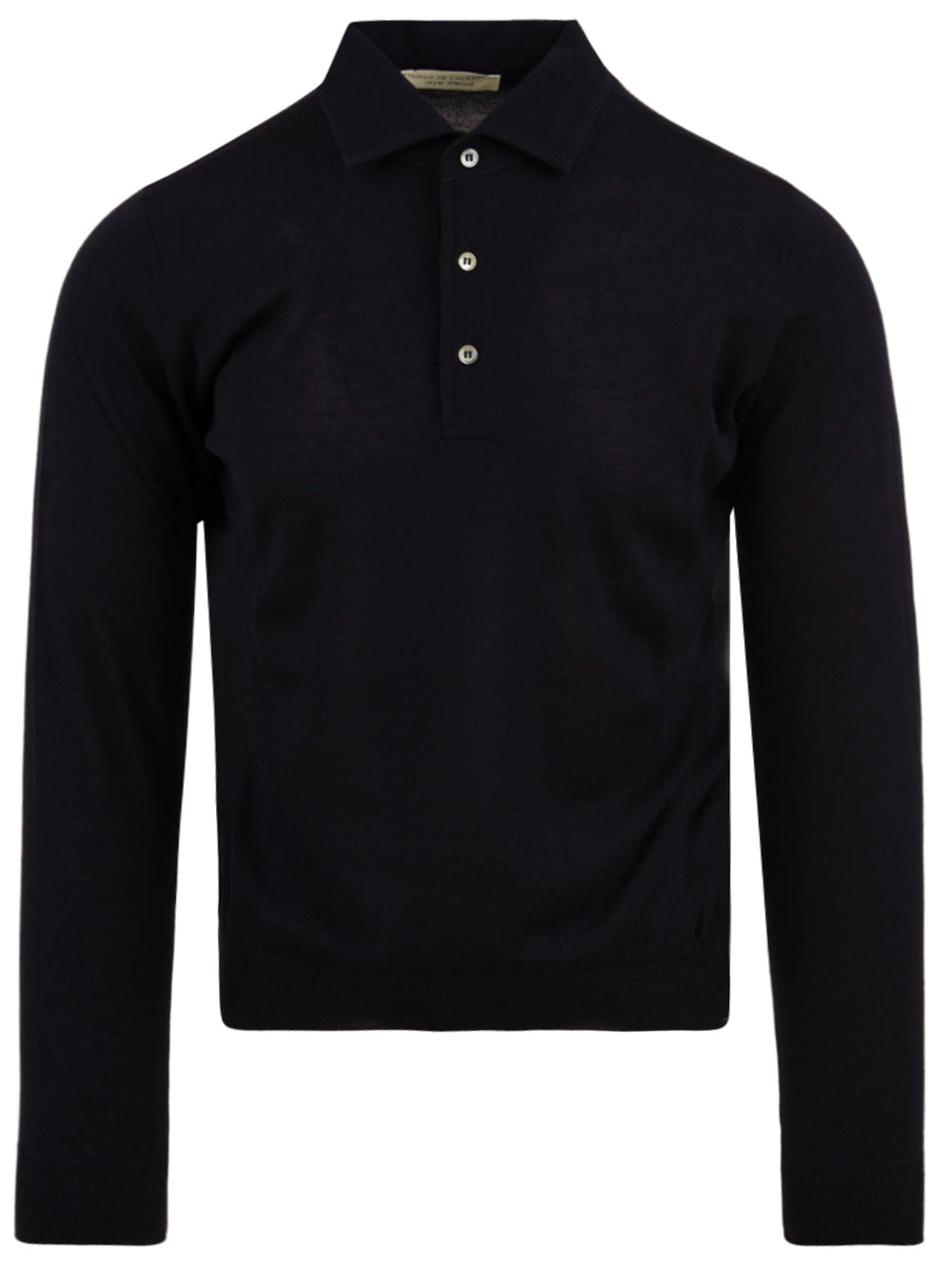La polo a maniche lunghe Paramontura in lana merino di Filippo De Laurentiis è il capo perfetto per l'uomo che ricerca eleganza e qualità. Realizzata con cura artigianale, questa polo offre un comfort eccezionale e un look impeccabile grazie alla sua tonalità blue e ai bordi rinforzati in paramontura.
