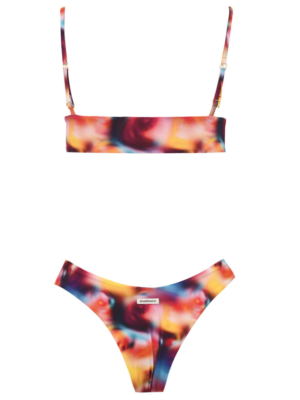 Il Costume donna modello Dora Tie Dye sui toni dell'arancione firmato Matinée è perfetto per chi vuole essere trendy in spiaggia. Slim fit con top a canotta con coppe estraibili e bretelle regolabili per un comfort ottimale. Lo slip regolare e la stampa all over sui toni dell'arancio rendono questo costume unico e originale. Prendilo al volo!