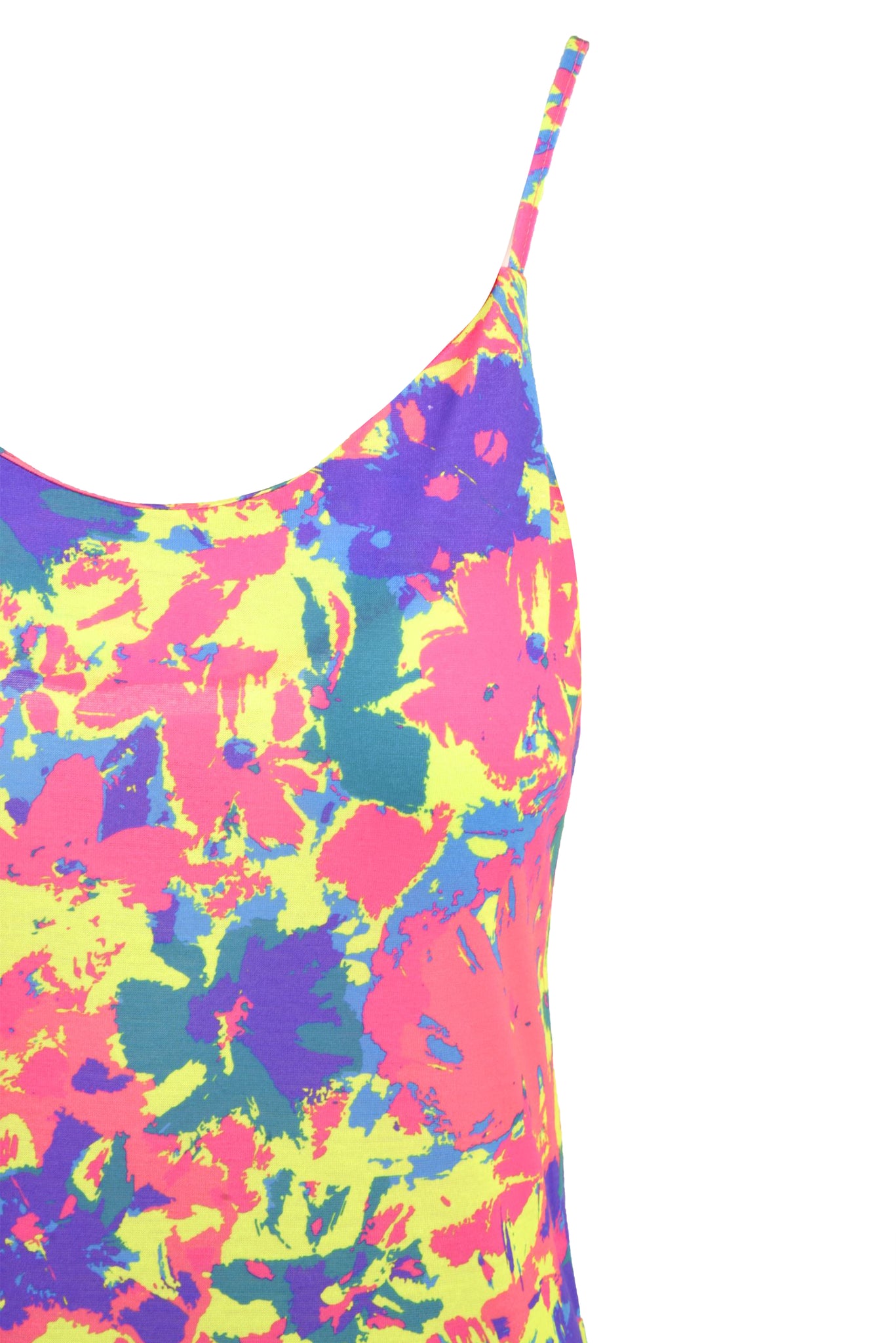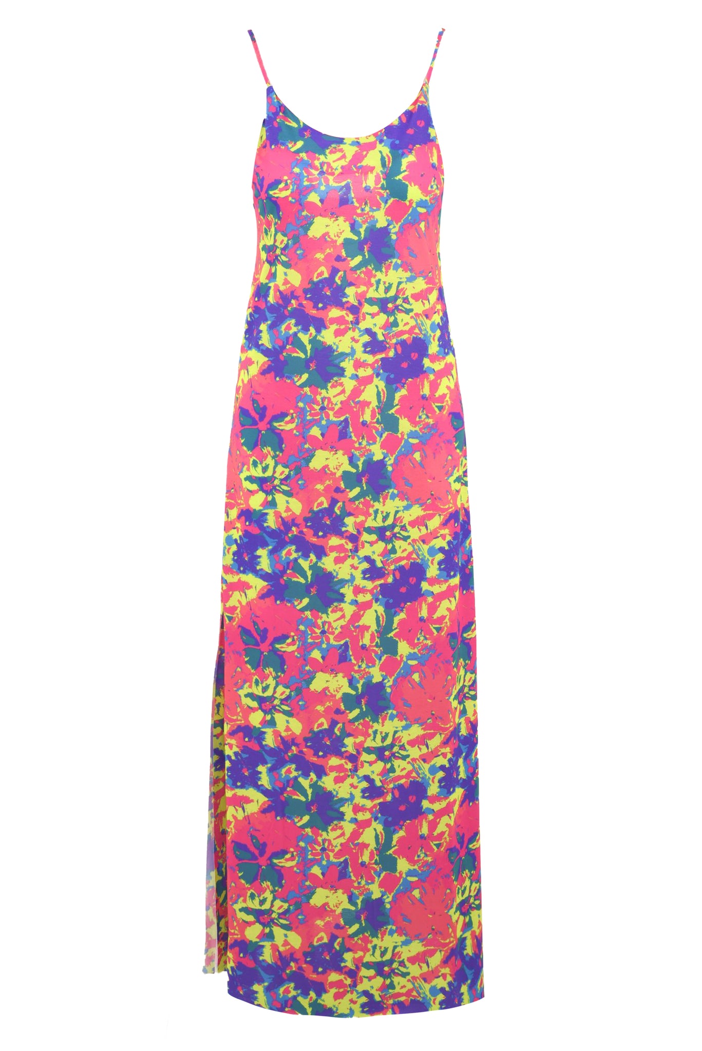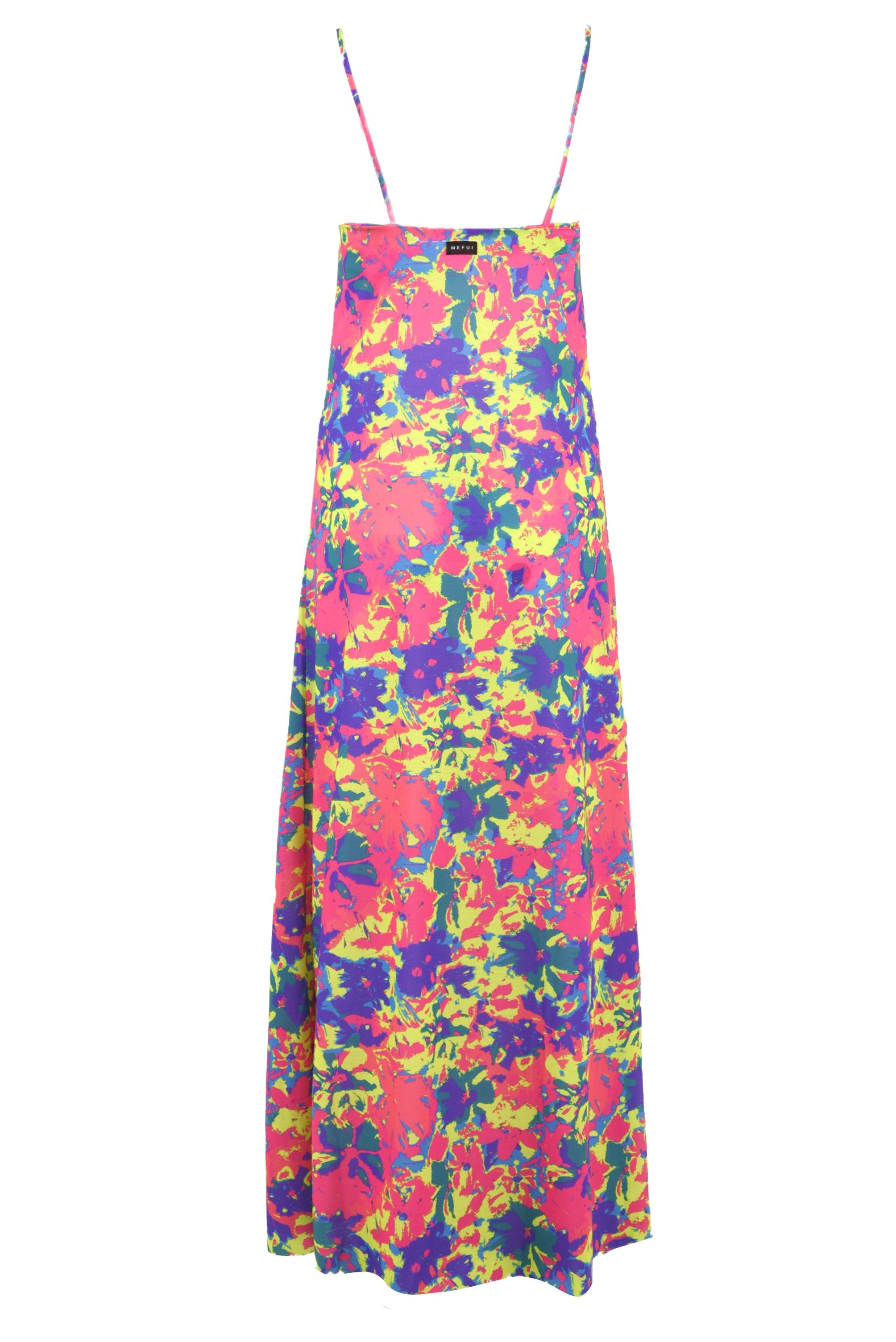 Lasciati conquistare dal nostro Abito donna lungo con fantasia floreale firmato Me Fui! Realizzato in tessuto lycra, presenta una fantasiosa stampa floreale, spalline regolabili e logo nero sull'etichetta sulla schiena. Le spaccature laterali donano movimento e originalità, regalandoti un look fresco e colorato.