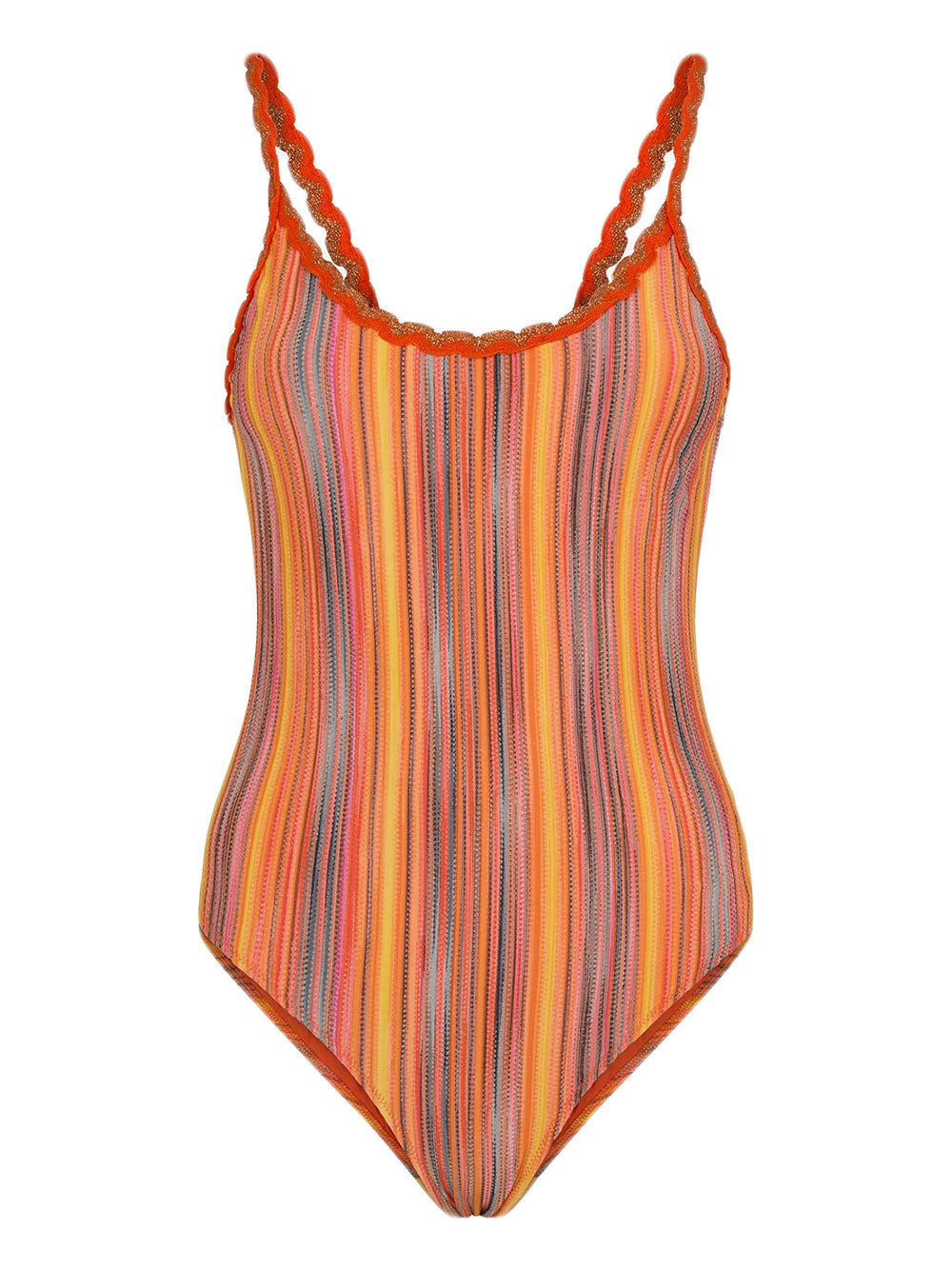 Aggiungi un tocco di eleganza bagnata al tuo stile con il nostro costume monokini firmato Me Fui con allacciatura sul retro. Realizzato in tessuto jacquard con dettagli in passamaneria crochette e stampa all over, questo capo è dotato di imbottitura interna estraibile per un supporto extra. Perfetto per un look da spiaggia sofisticato.