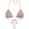 Costume triangolo EFFEK Donna - Marrone, realizzato in lurex con una silhouette minimalista e moderna. Dotato di imbottitura interna estraibile, il costume presenta una composizione di 77% poliestere, 17% metallo e 6% elastan.