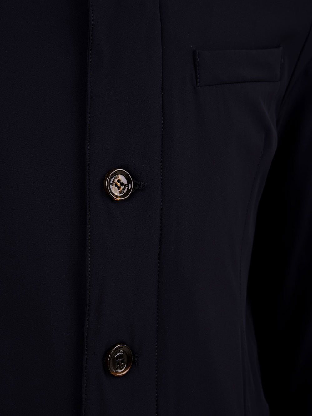 Chiusura frontale con zip nascosta e bottoni;