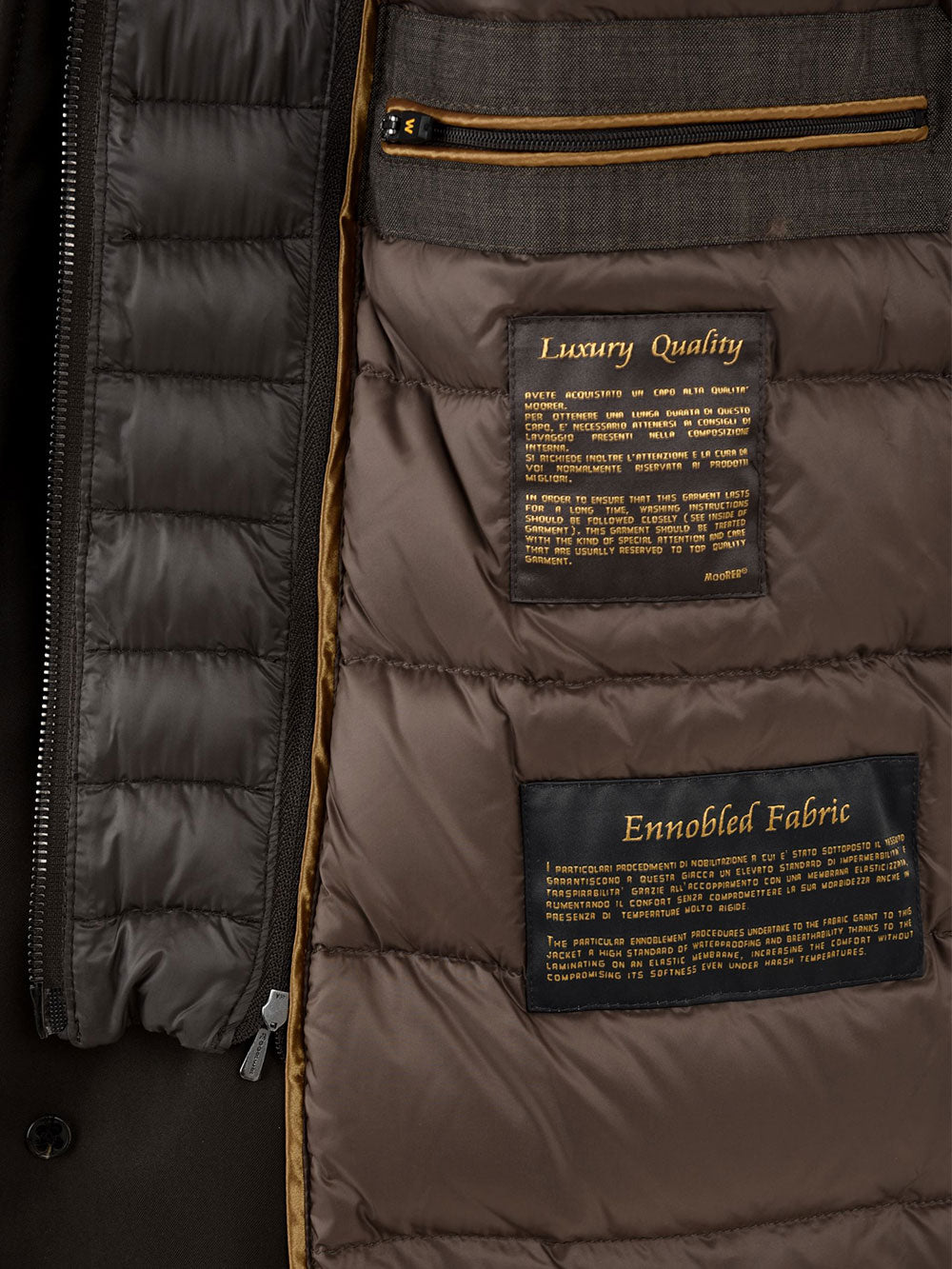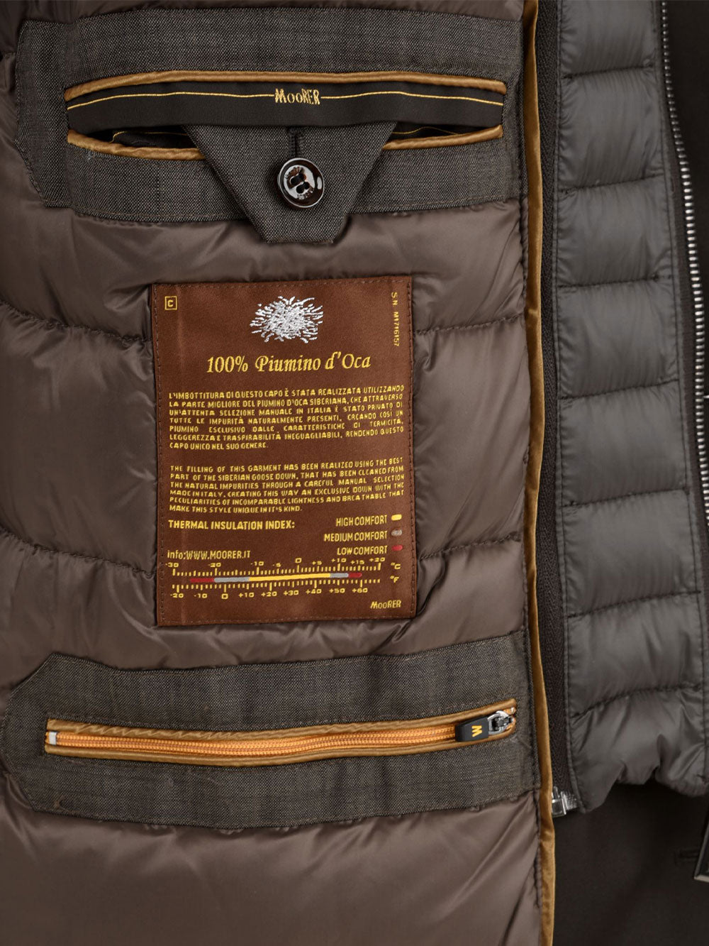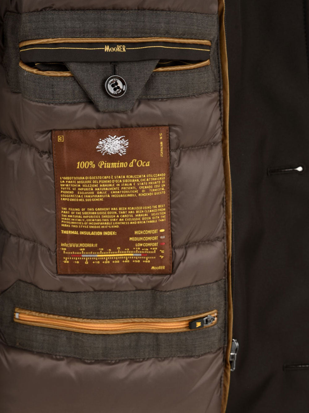 Cappotto Uomo firmato Moorer realizzato in tessuto liscio imbottito, dotato di collo alto, chiusura con bottoni e pettorina interna trapuntata. Un capo raffinato e versatile che non passa inosservato!