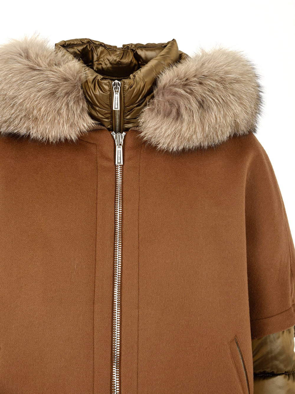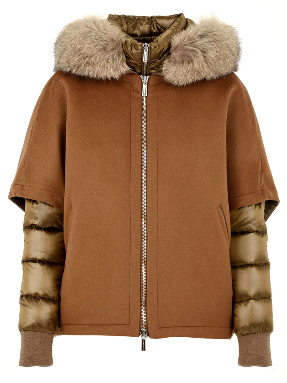 Giubotto Donna, modello Pegaso-Cwe, firmato Moorer. Dotato di cappa rimovibile in misto cashmere sovrapposta ad un piumini imbottito. Dispone di un inserto in vera pelliccia di volpe, chiusura centrale con doppio cursore e due tasche laterali con zip. Un capo caldo e versatile, ideale per completare qualsiasi look casual!