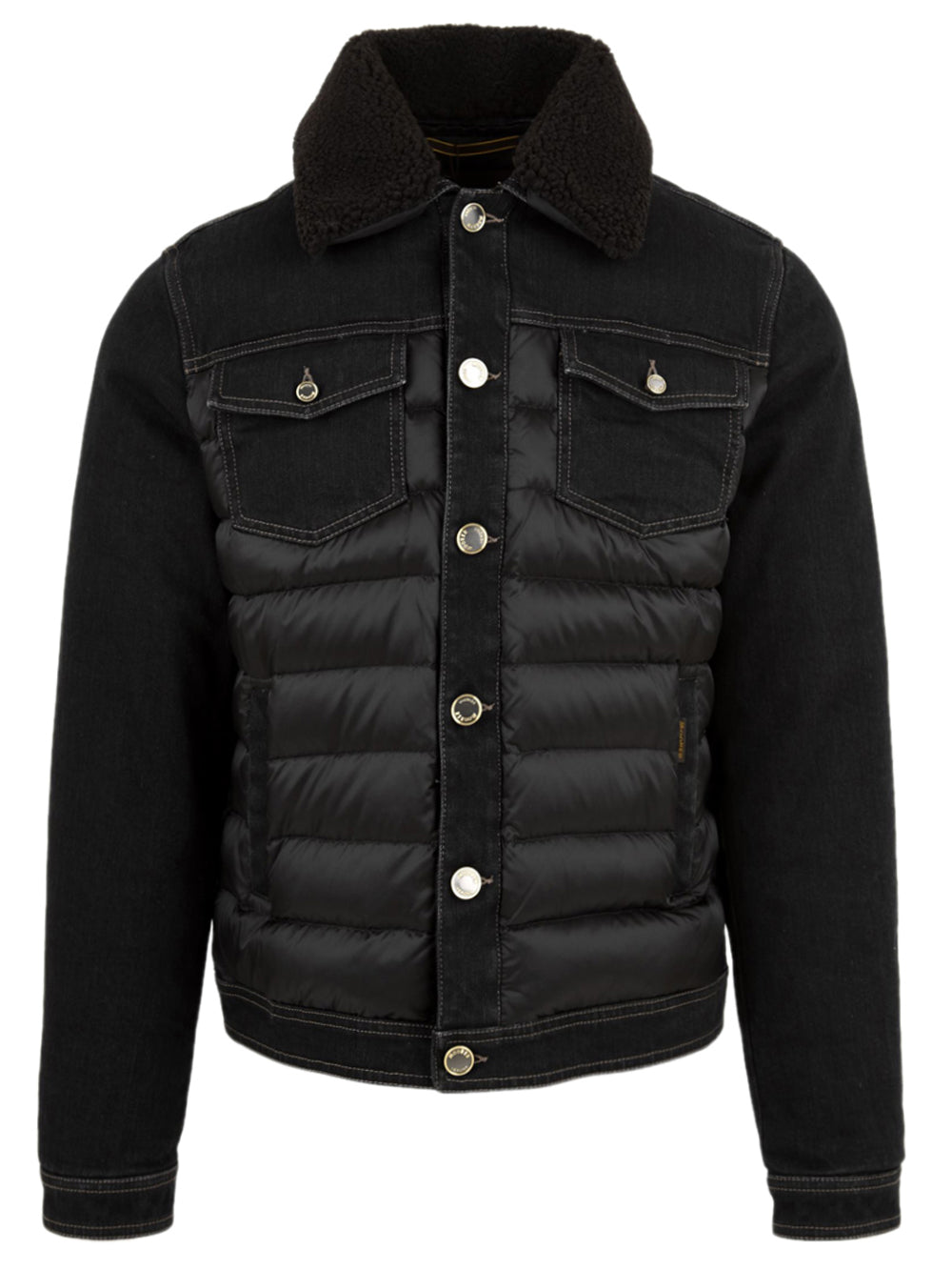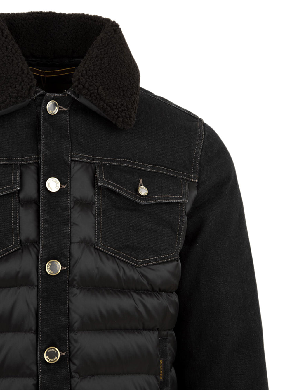 Giubbotto Uomo, modello Mondor-Fur, firmato Moorer caldo e versatile. Dotato di collo effetto teddy, chiusura frontale con bottoni e di due tasche sul petto con patta. Un capo in denim con inserto trapuntato unico nel suo genere, non farlo scappare!
