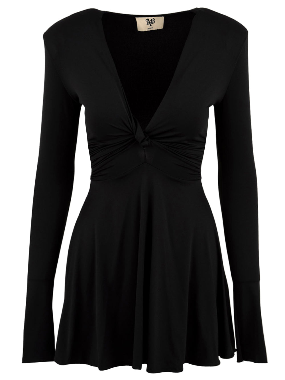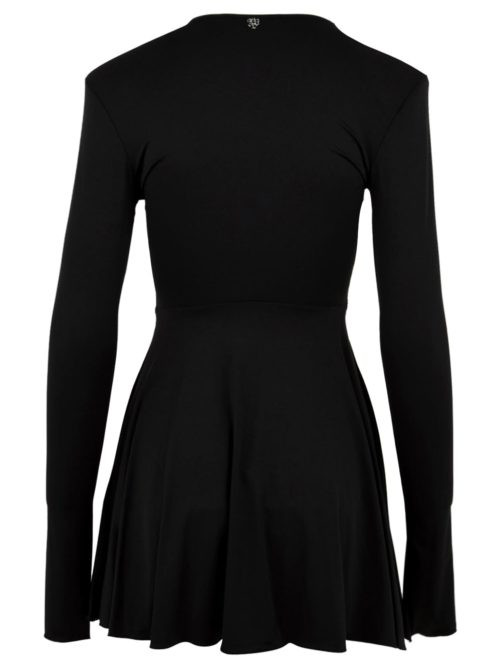Abito corto Jett Aniye By Donna - Nero. Questo abito mini presenta una costruzione interamente in lycra, caratterizzata da maniche lunghe e una gonna a ruota che dona movimento. La profonda scollatura centrale è arricchita da un dettaglio ad incrocio. La composizione del tessuto in poliammide con elastan offre una vestibilità che esalta la silhouette, conferendo al capo una struttura avvolgente e dinamica.