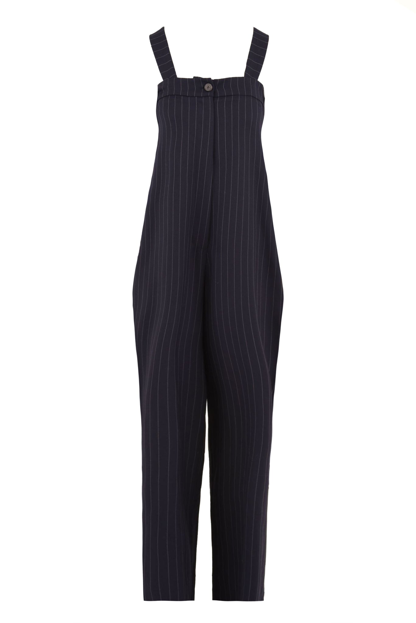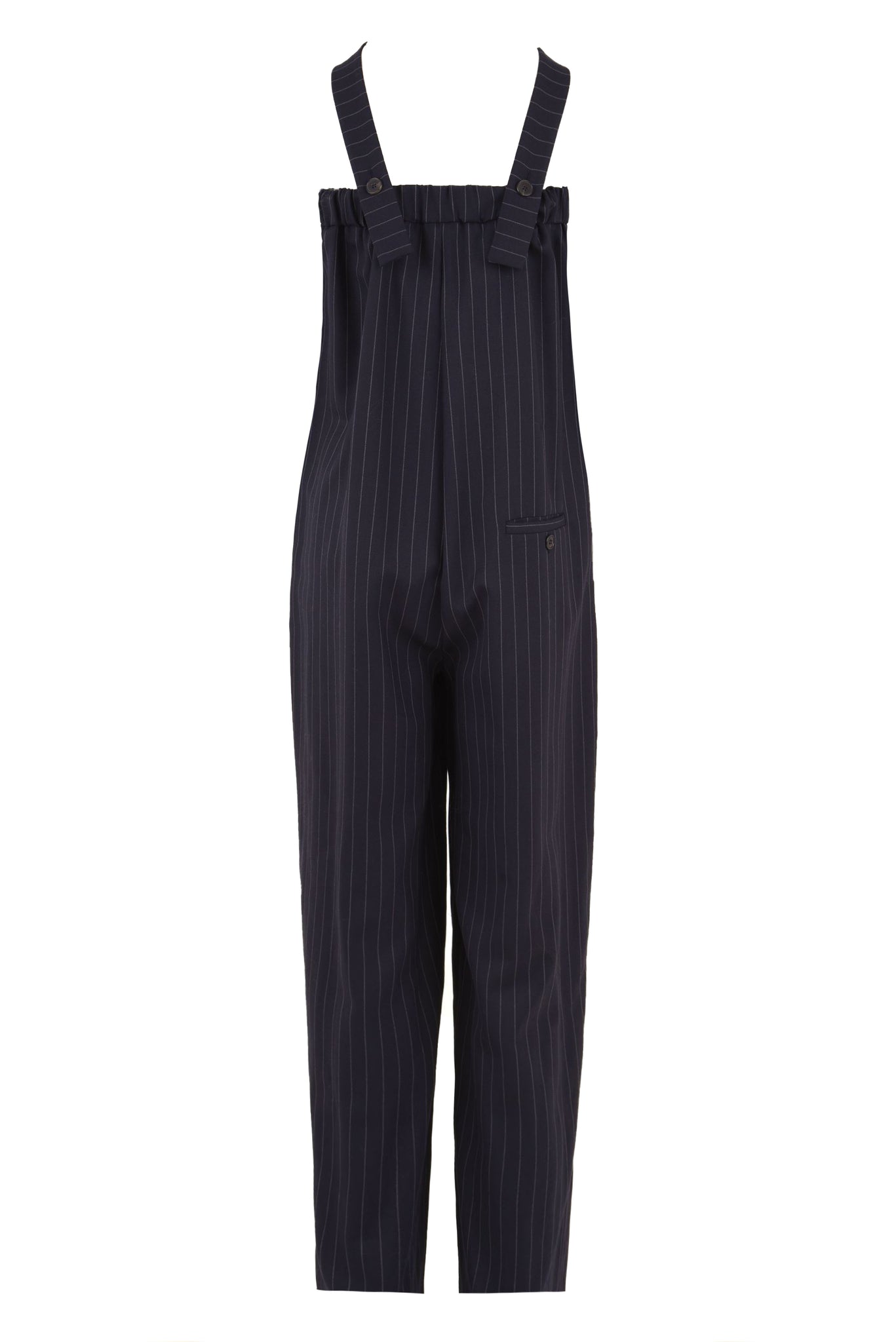 Salopette in lana gessata da donna firmata Solotre. Scoprite questa salopette da donna in lana di alta qualità. Il gessato e le tasche a filo garantiscono una vestibilità comoda. Ideale per per un look casual.