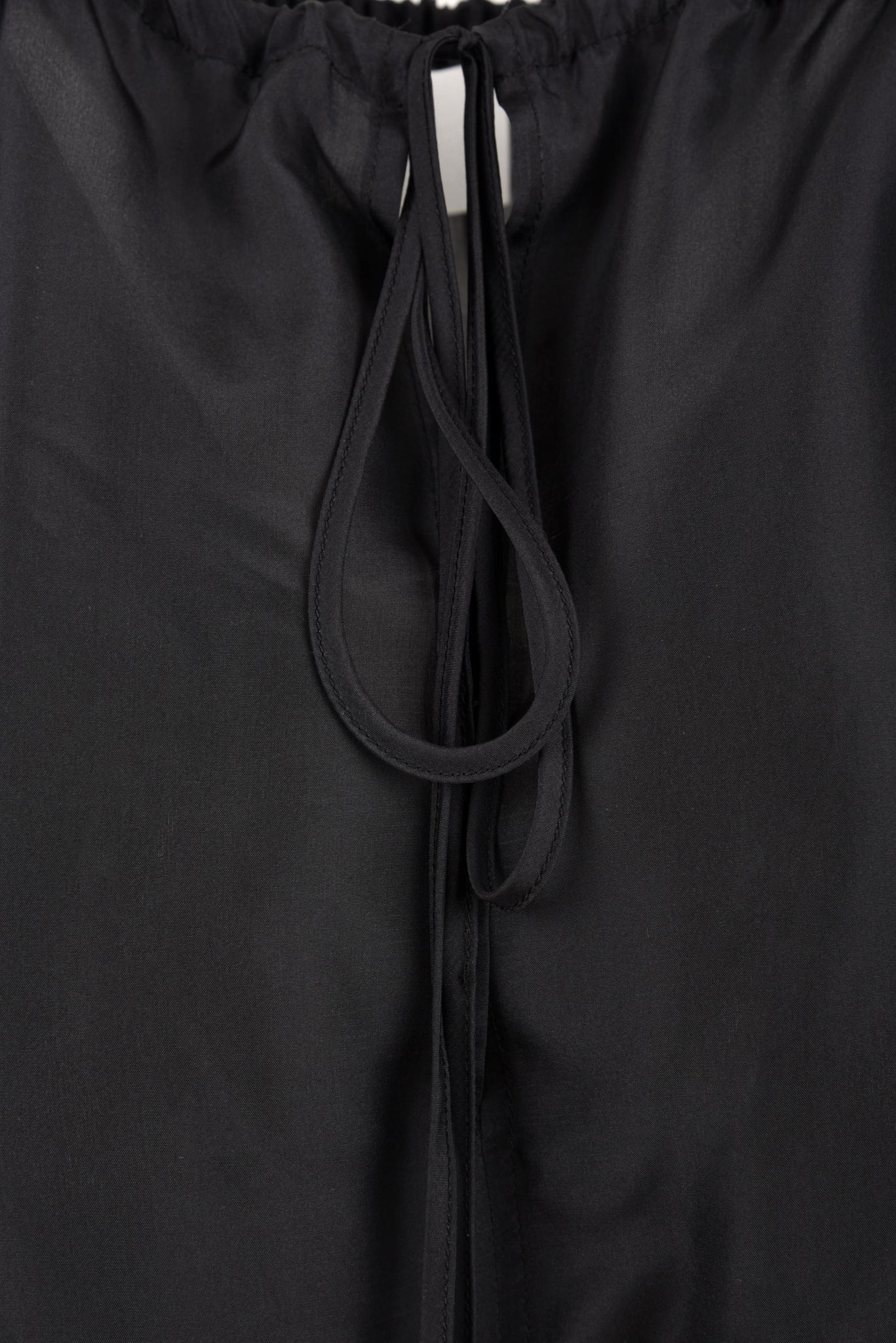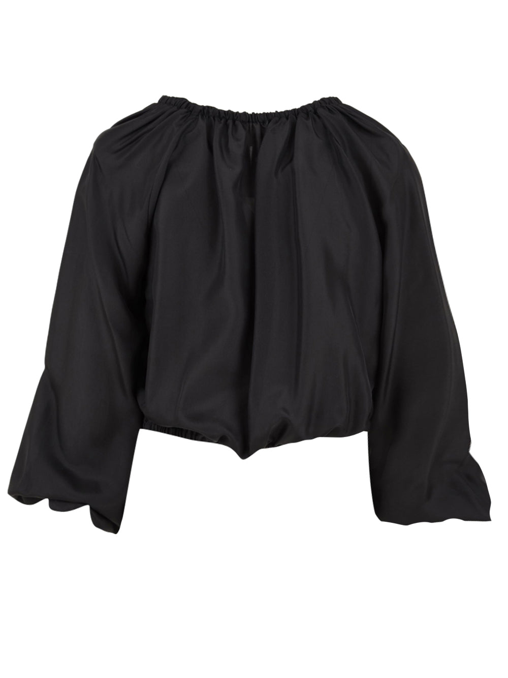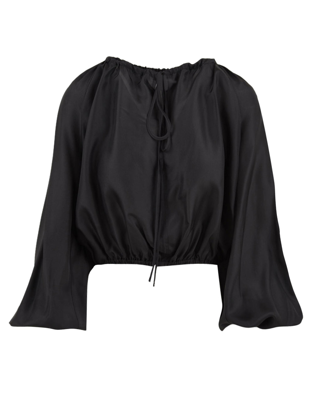 Rendi il tuo look più elegante con la nostra blusa in seta con maniche lunghe firmata Solotre. Il suo scollo rotondo e i bordi elasticizzati ti garantiranno un comfort senza pari, mentre i polsini sul fondo manica aggiungono un tocco di raffinatezza. Completa il tutto con la chiusura con laccetti sul retro per un look ancora più sofisticato.