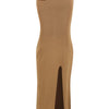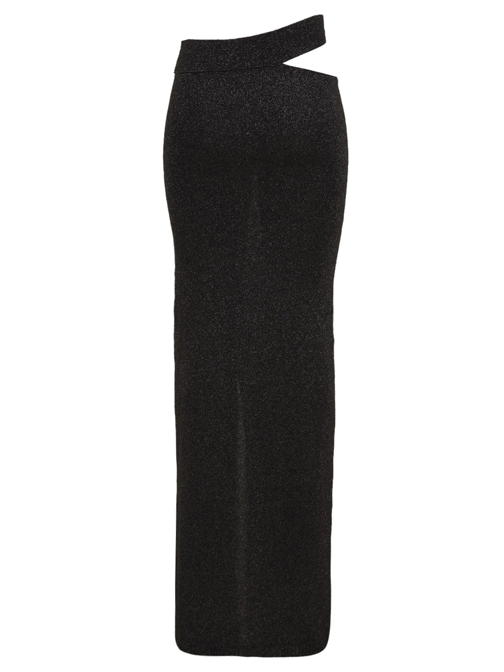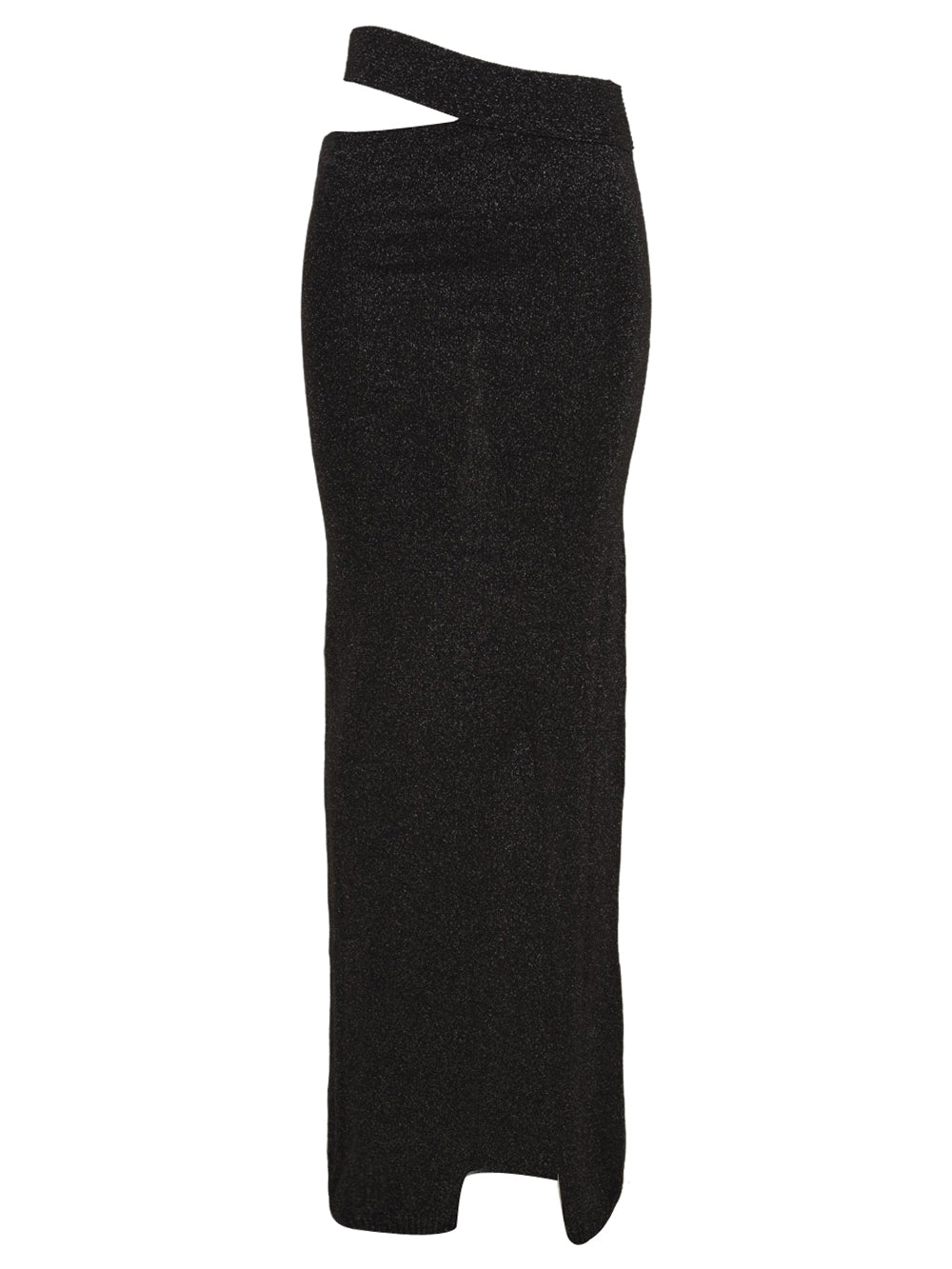 This long dress by Akep is made of soft viscose blend jersey and features an eye-catching ribbed detail in lurex fabric with side slit. Its feminine design enhances the silhouette and gives a touch of elegance thanks to its decorative band. Add a touch of sophistication to your look with this women's dress!
