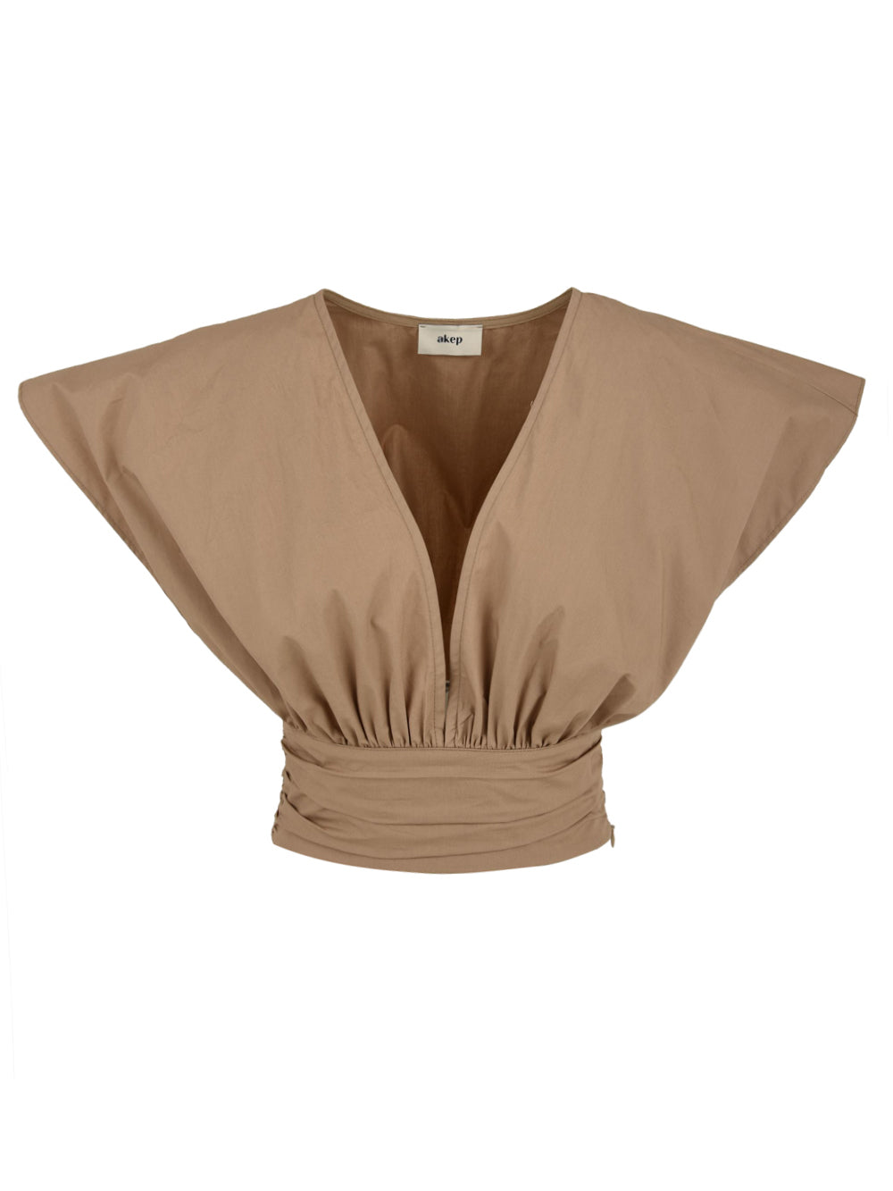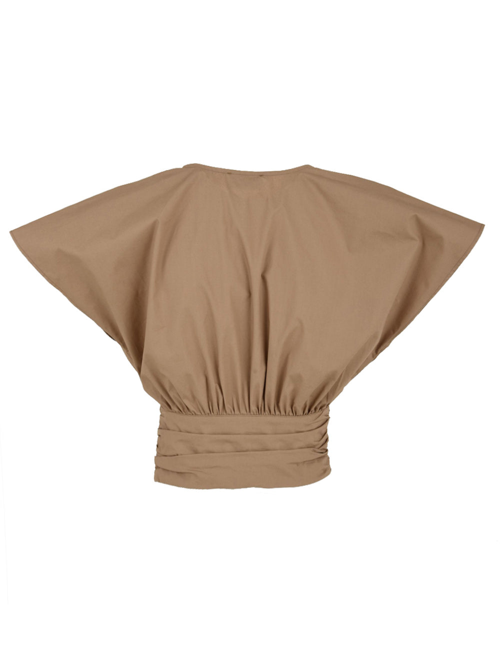 Enhance your femininity with our beige women's blouse! Made of soft 95% cotton and 5% elastane, it guarantees a regular fit and unparalleled comfort. Its V-neck and gathered bustier at the waist add a touch of elegance, while the side zip and dropped armhole make it practical and modern. Add a touch of class to your wardrobe with our blouse!