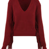 Scopri l'eleganza contemporanea con questa irresistibile maglia Akep, caratterizzata da uno scollo a "V" in punto pannocchia e corredato di frange, perfetto per chi ama uno stile deciso e metropolitano.