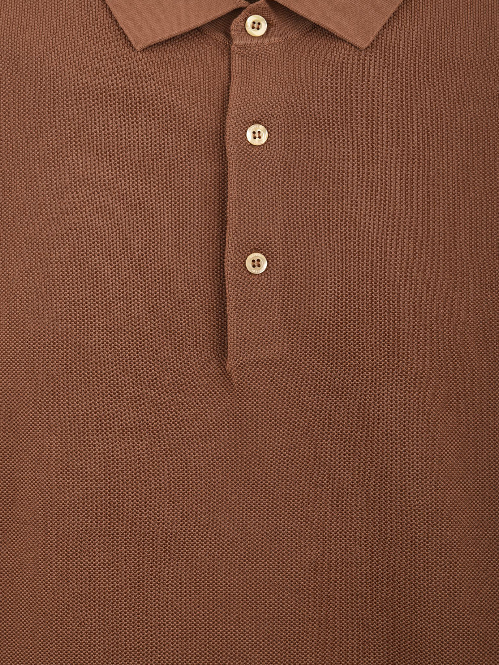 Polo Aspesi Uomo - Marrone, realizzata interamente in cotone, offre una silhouette classica con maniche corte. Il design include un'abbottonatura sul davanti che conferisce un aspetto distintivo al capo. La struttura presenta cuciture precise che garantiscono durabilità nel tempo. Questa polo è un esempio di semplicità e funzionalità, enfatizzata dalla purezza del materiale.