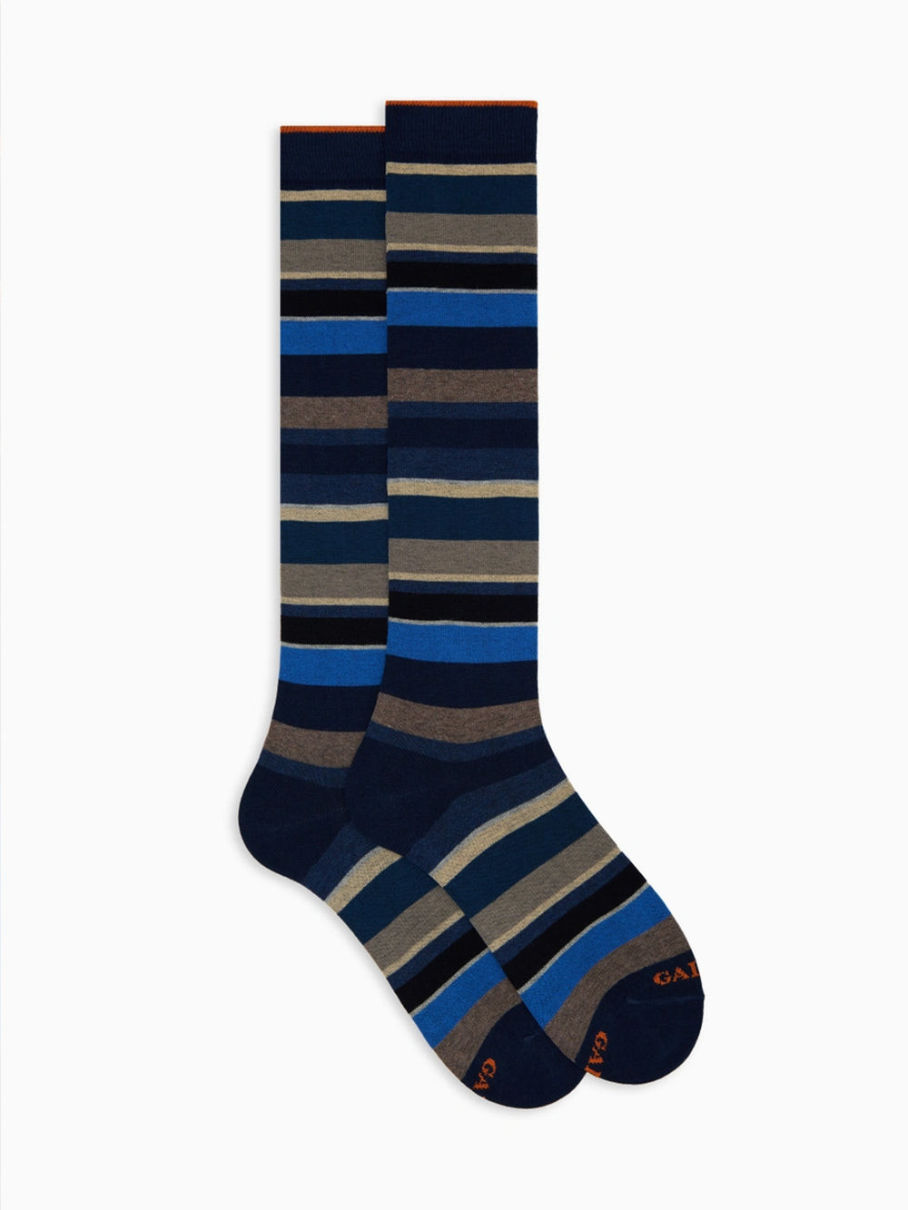 Le calze lunghe a righe multicolor di Gallo sono l'accessorio perfetto per gli uomini che amano distinguersi con stile. Caratterizzate da un design iconico e dai colori vibranti, queste calze aggiungono un tocco di vivacità a qualsiasi outfit, mantenendo allo stesso tempo comfort e qualità grazie alla loro composizione in cotone elasticizzato.