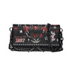 Questa pochette è perfetta per arricchire un look total black o per essere abbinata a un outfit casual chic dai toni neutri. L'accessorio è ideale per eventi serali, grazie alla sua capacità di catturare l'attenzione con eleganza. Indossala con un vestito grazioso o un ensemble di jeans e blazer per un contrasto stilistico che enfatizza il tuo spirito libero e punk.
