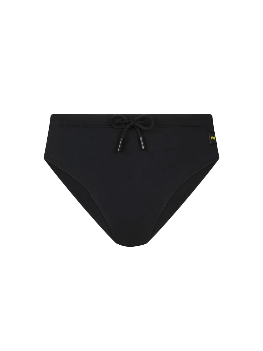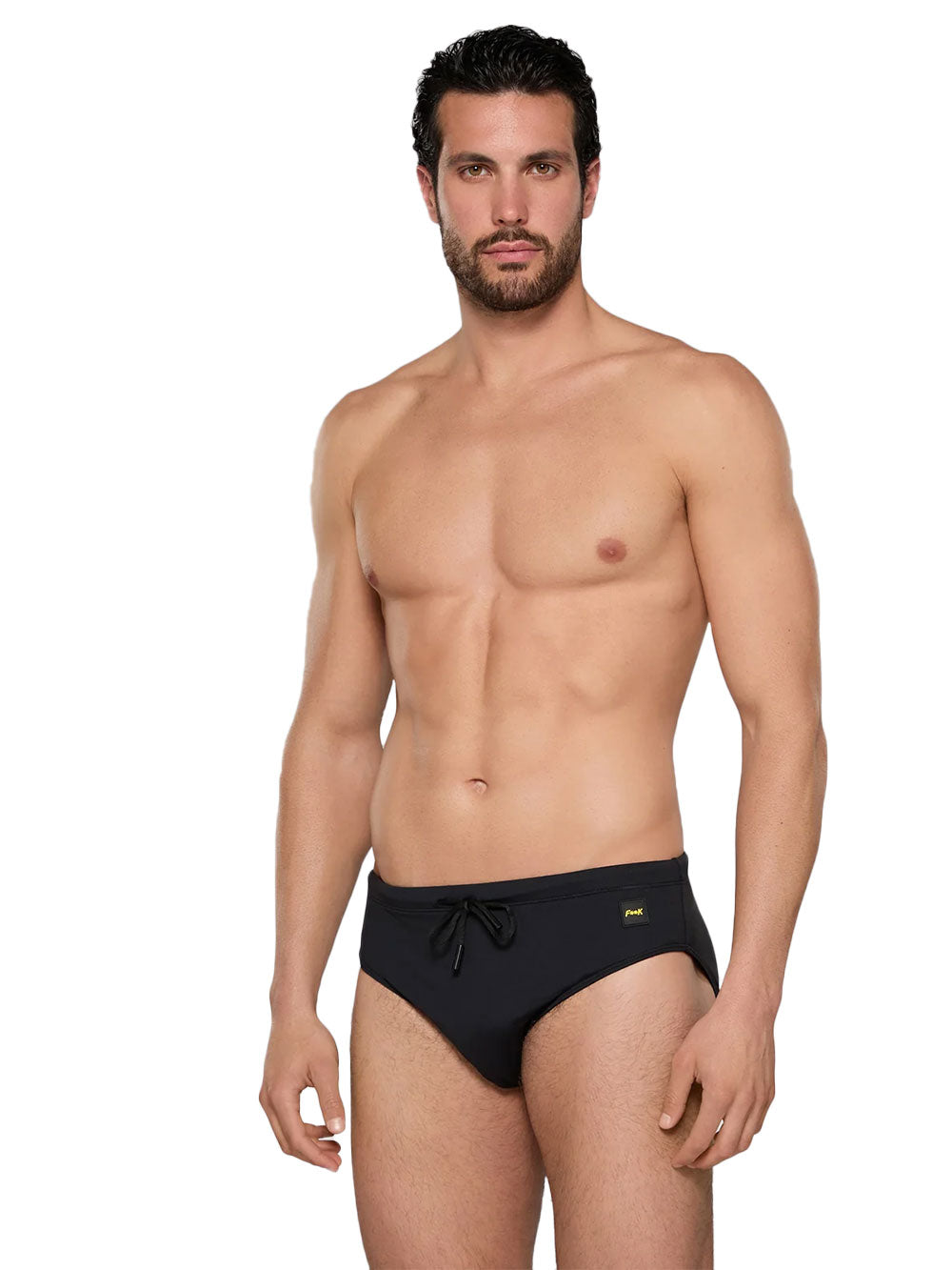 Solid color men's swim briefs by F**K . The swimsuit Slip is made of high quality polyamide fabric, resistant to water and chlorine. The drawstring and adjustable waist tie provide a tailored fit for maximum comfort.