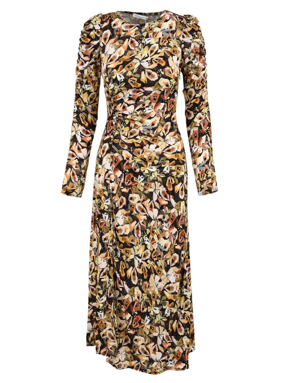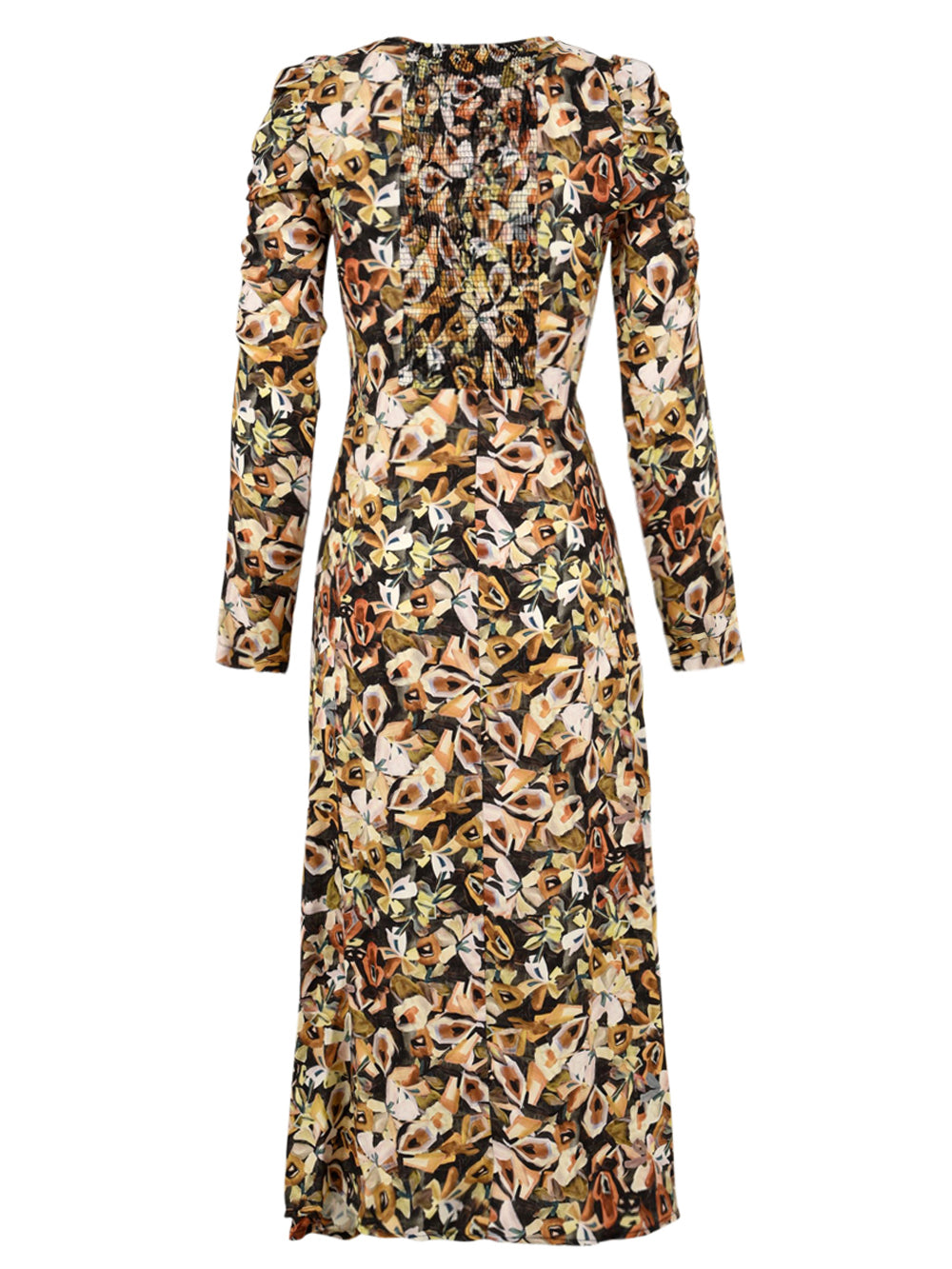 The dress women's Chloe model by Mar De Margaritas with long sleeves, warm shades, delicate floral print. A creation that expresses luxurious quality and at the same time offers absolute comfort.