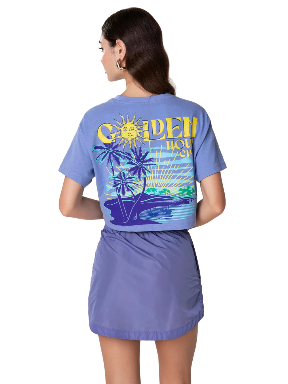 Let yourself be carried away by the fresh palm tree print on the back of this women's cotton T-shirt by Effek , perfect for summer. Its cropped silhouette gives a touch of style, while the short sleeves and crew neck make it comfortable and versatile. Show your passion for fashion with the front print on the chest and the maxi print on the back!
