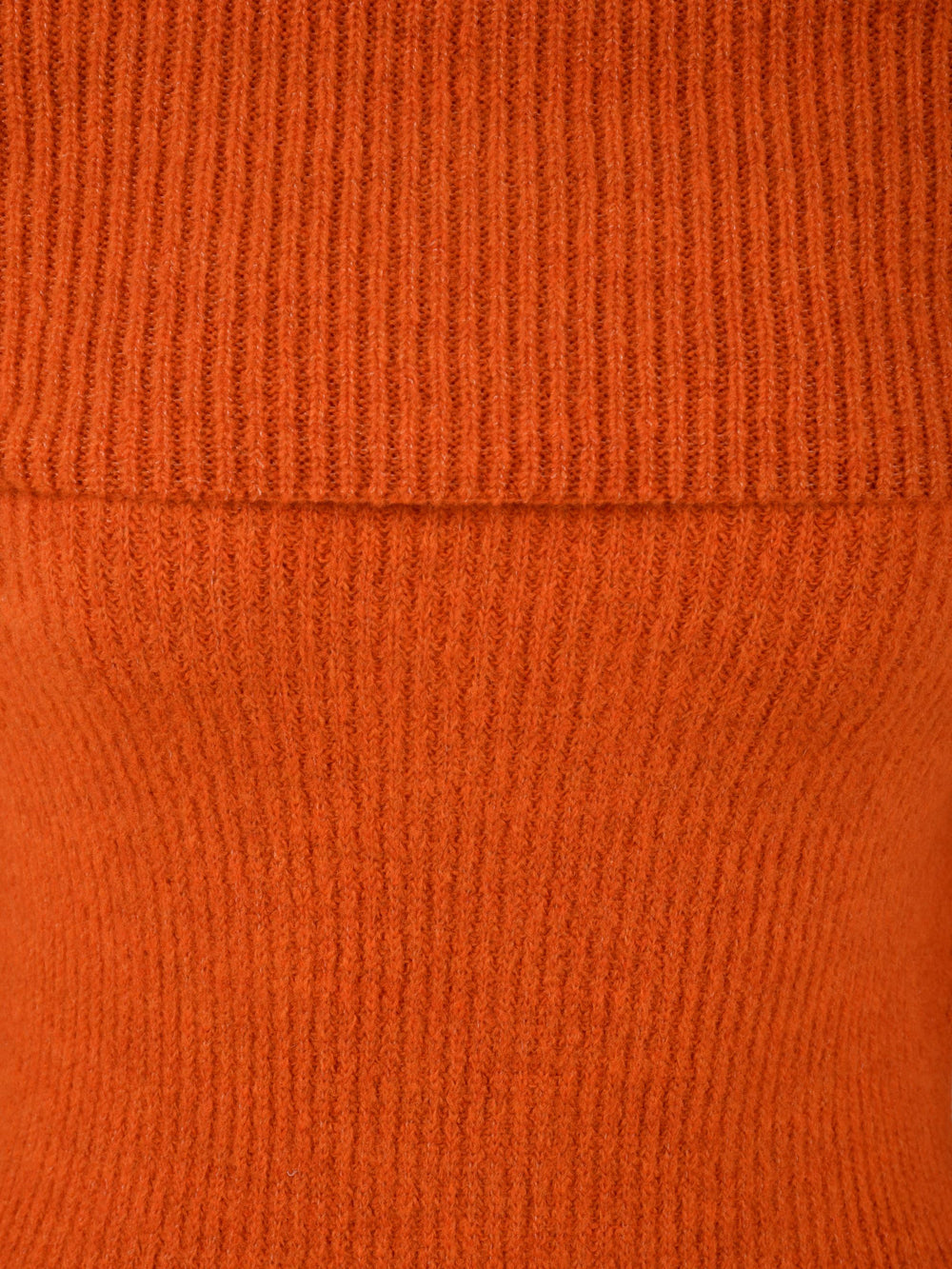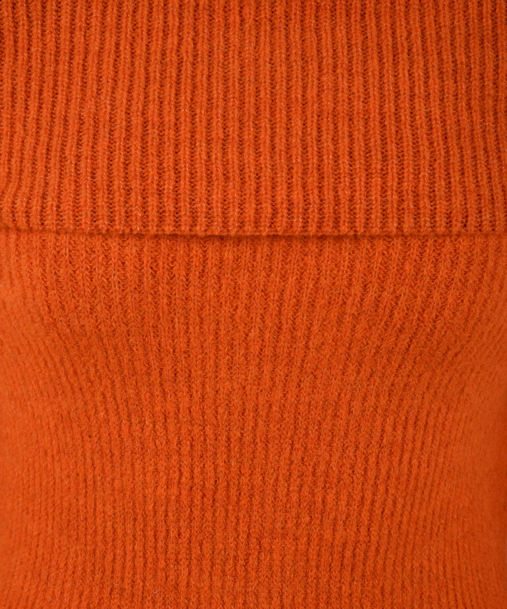 The warm and comfortable short orange knit dress with an elegant shiffer neckline by Akep is perfect for any occasion thanks also to the ribbed design.