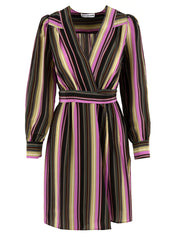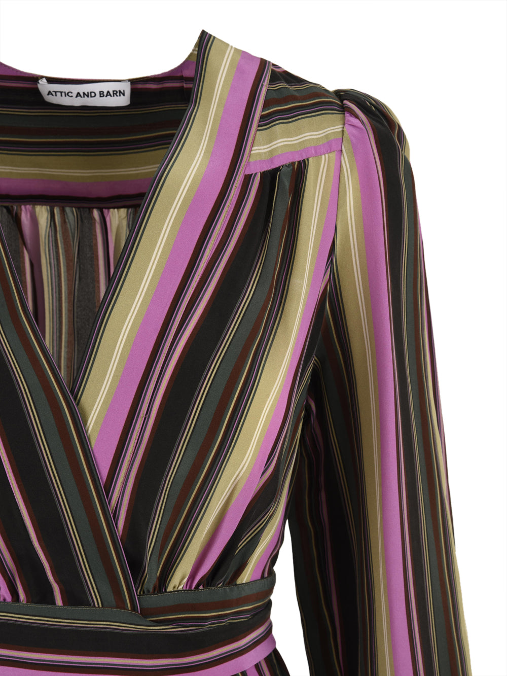 The Attic and Barn Loncoln women's dress is the perfect look for those who love to dare! Enriched with vertical colored stripes and a bow on the back, the dress is made even bolder by the belt at the waist and long sleeves. Don't delay in being a woman who knows how to dare!