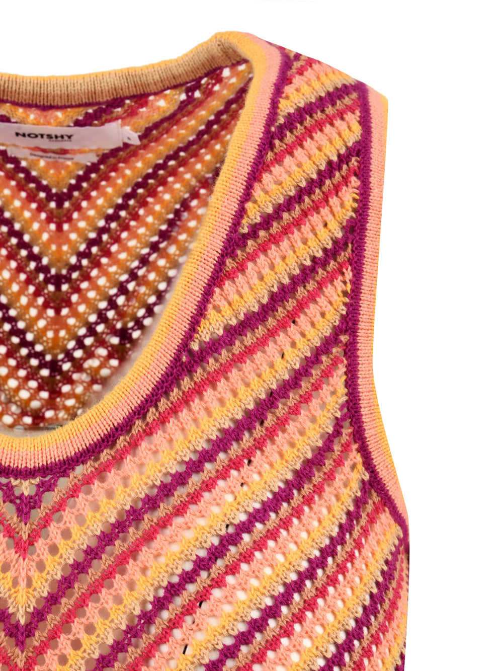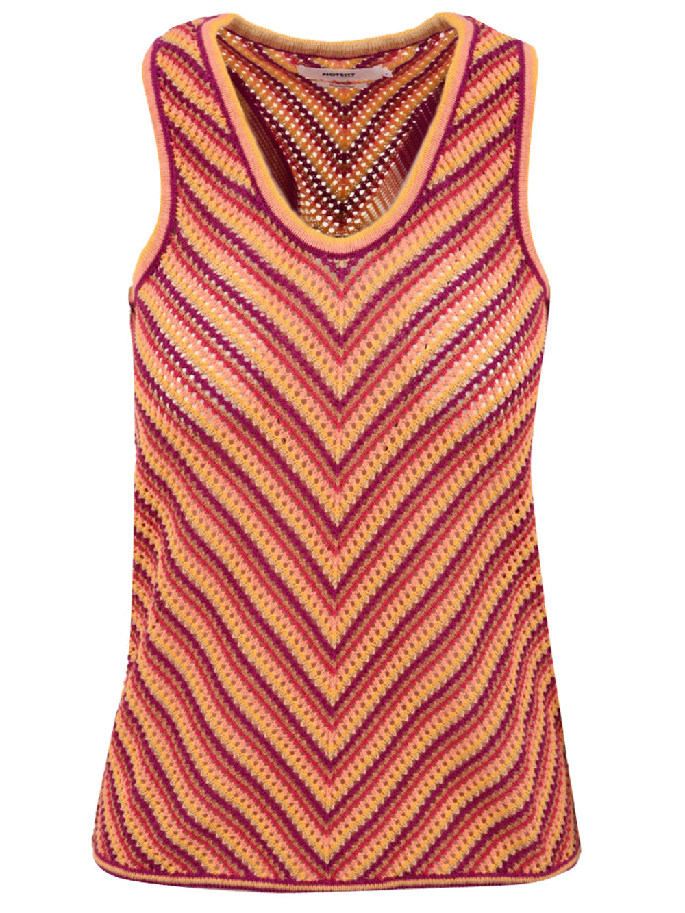 Enhance your elegance with our perforated women's tank top from Not Shy . Thanks to the V-neck and short sleeves, you will have a sophisticated and fresh look. The perforated fabric and ribbing make this tank top unique and the straight cut will ensure a comfortable and fashionable fit.