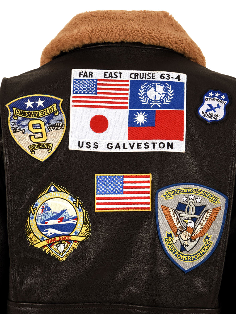 Giubbotto Super Vintage Leather Fur Collar TOP GUN Uomo - Marrone