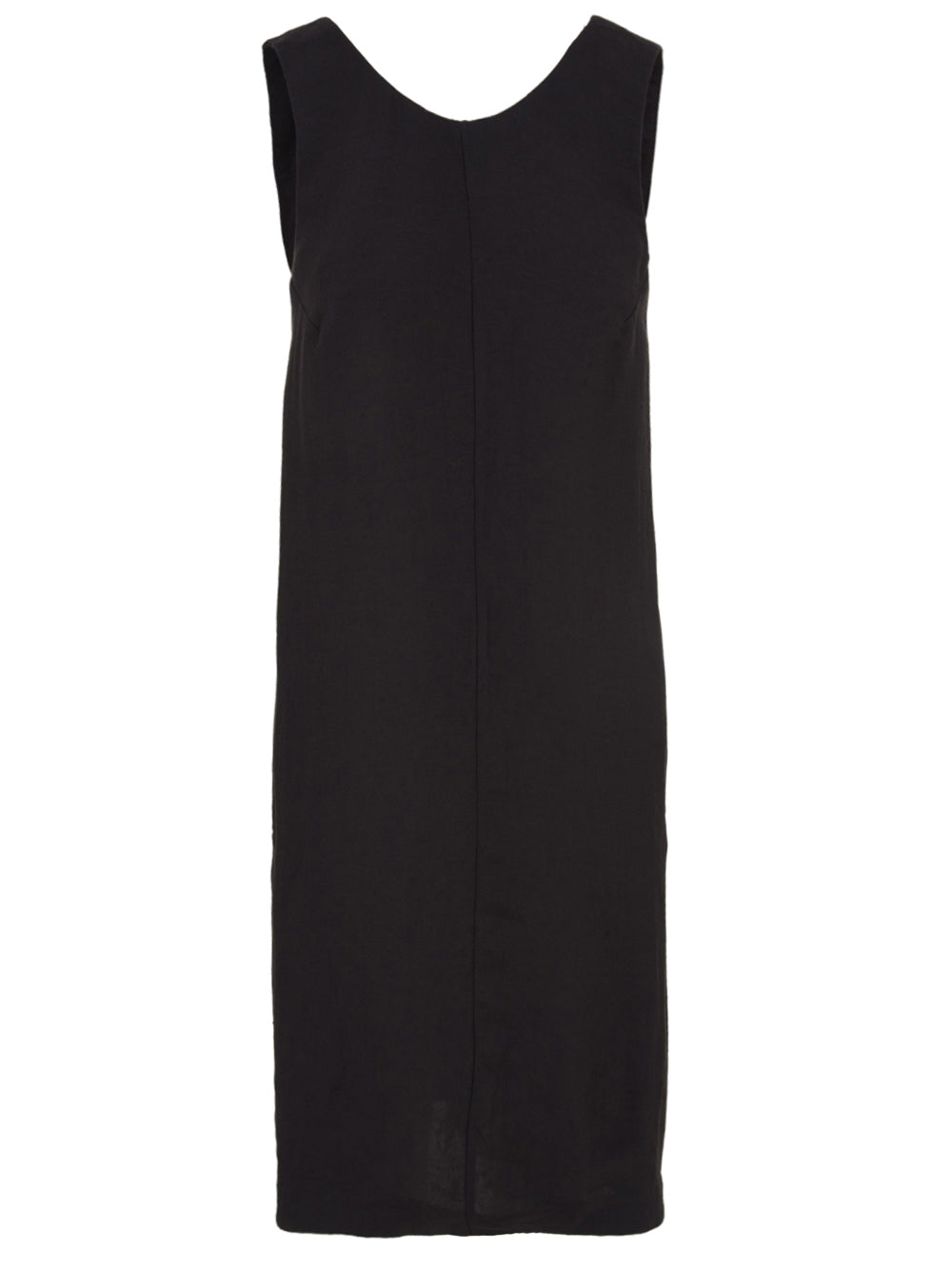 Découvrez l'élégance de cette robe courte noire pour femme. Confectionnée à partir de lin de haute qualité, cette coupe régulière offre un style moderne et raffiné. La silhouette est soulignée par une encolure en V et une coupe centrale avant-arrière. Et n'oubliez pas les poches ! Un vêtement pratique et raffiné.