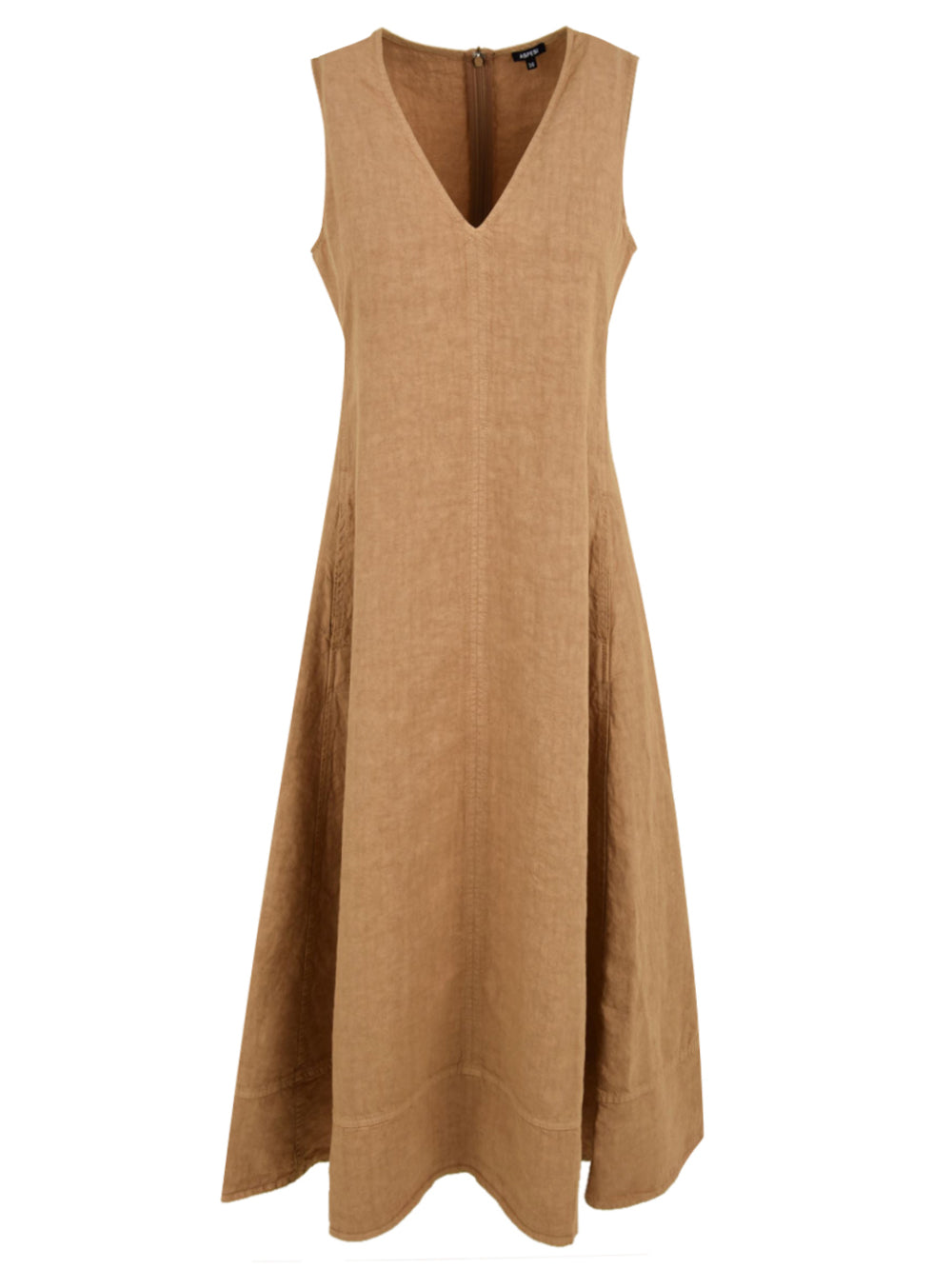 Robe en lin pour femme sans manches par Aspesi . Ajoutez une touche d'élégance à votre garde-robe avec cette robe longue pour femme. Fabriqué à 100 % en lin de haute qualité, il offre un ajustement léger et confortable. Le col en V et la tunique évasée créent un look sophistiqué, tandis que les poches le long de la couture des hanches ajoutent fonctionnalité et style. Parfait pour les occasions spéciales ou simplement pour une touche de sophistication au quotidien.