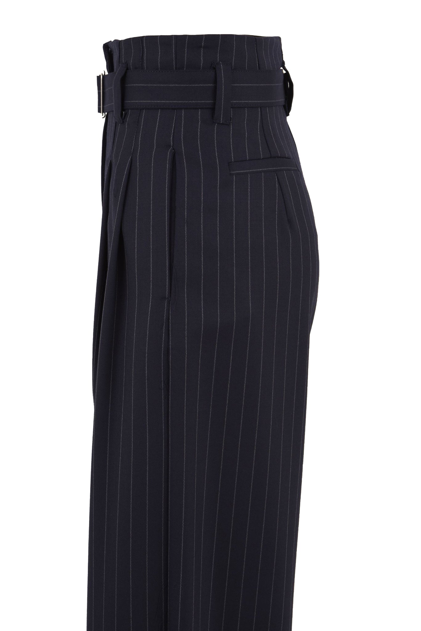 Pantalon femme taille haute à fines rayures avec ceinture design Solotre . Découvrez ce pantalon femme de haute qualité. La taille haute et la ceinture assurent un ajustement confortable. Idéal pour le bureau ou pour un look décontracté.