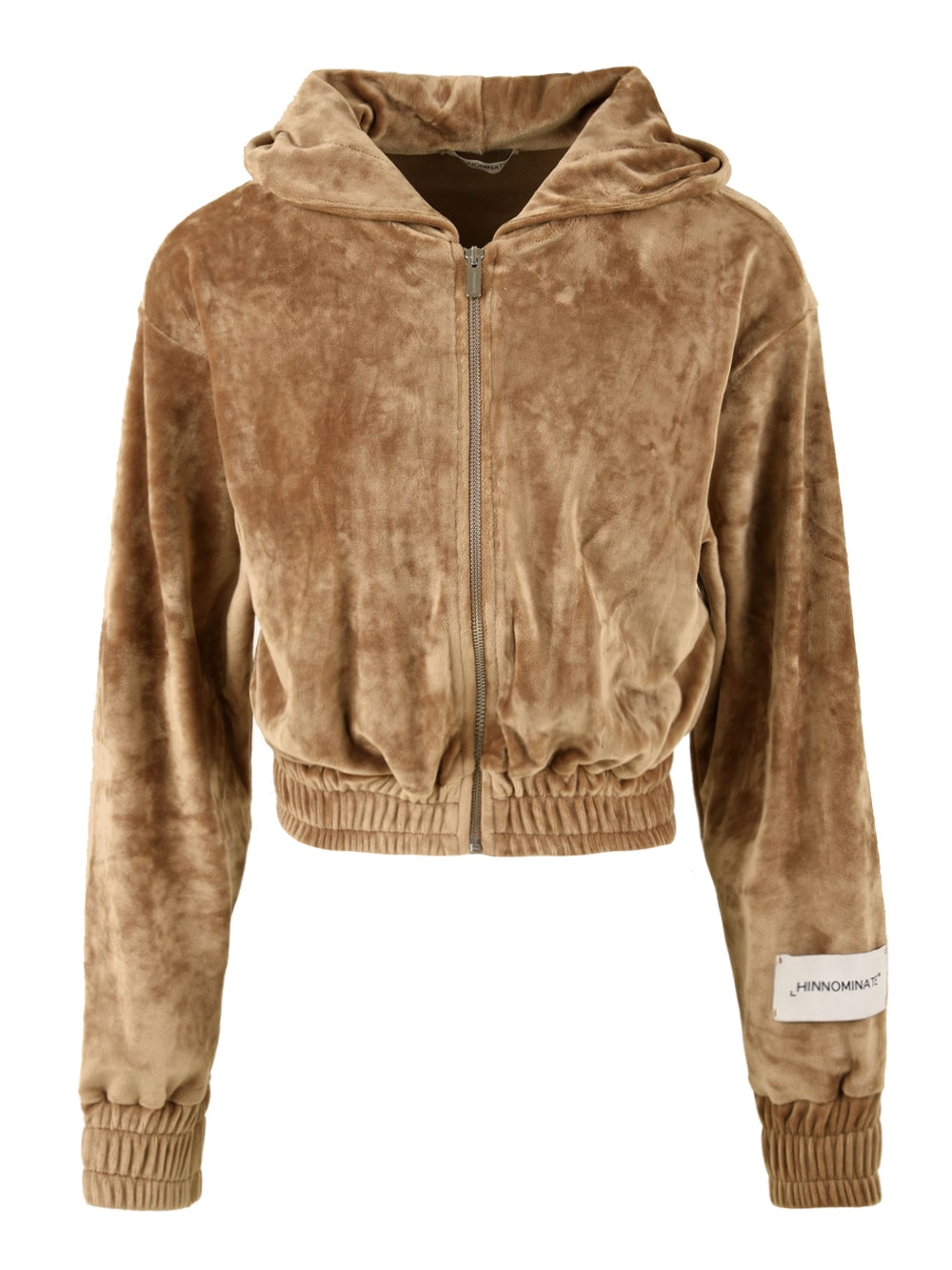 Sweat-shirt pour femme de Hinnominate en chenille de couleur unie. Equipé d'une capuche, d'une fermeture zippée sur le devant et d'un logo sur la manche. Un vêtement court, confortable et polyvalent, idéal pour un look tendance et sportif !