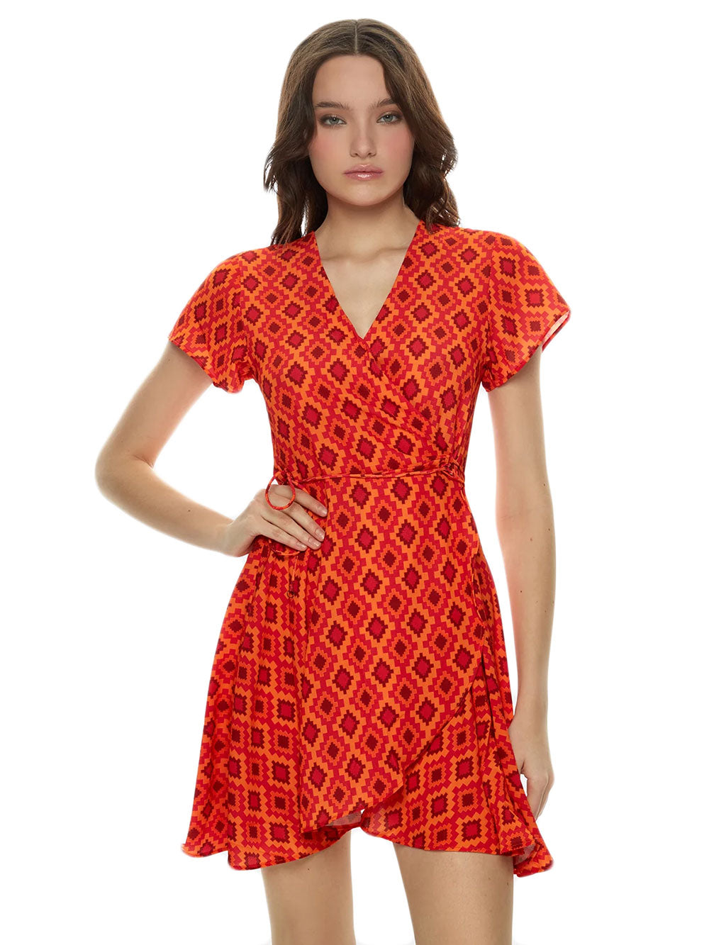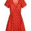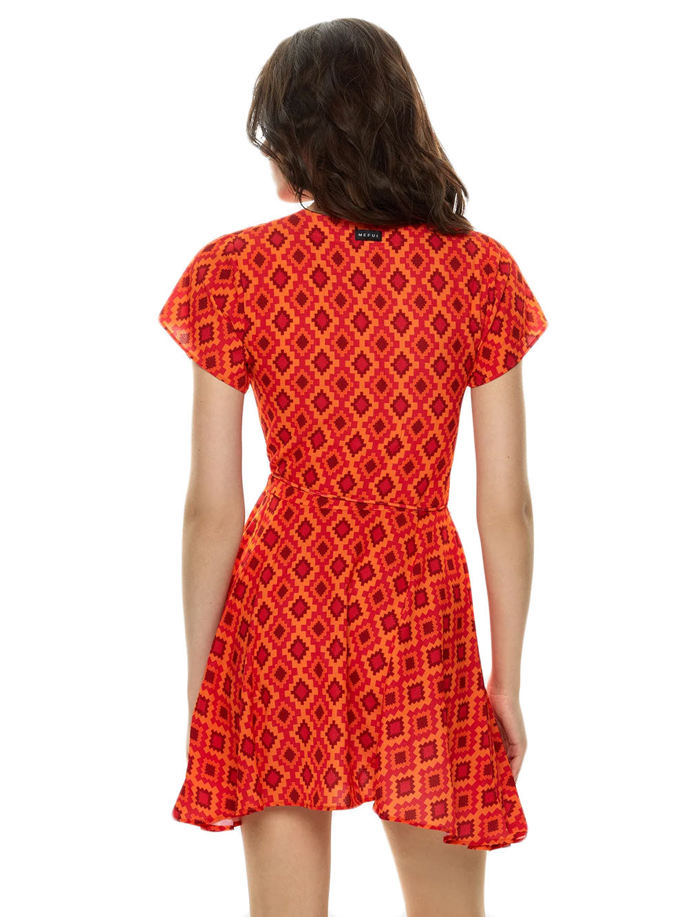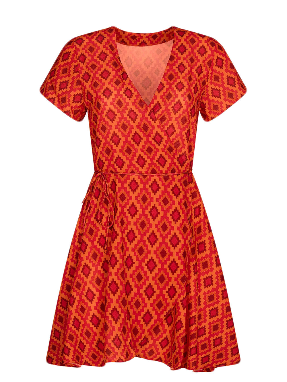 Magnifique robe rouge à motif multicolore de Me Fui pour une femme qui veut se démarquer ! Fabriqué en polyester doux et élasthanne, il garantit un ajustement régulier et confortable. Le col en V et les manches courtes ajoutent une touche d'élégance, tandis que la fermeture en dentelle et le motif imprimé all-over le rendent unique. Idéal pour toute occasion !