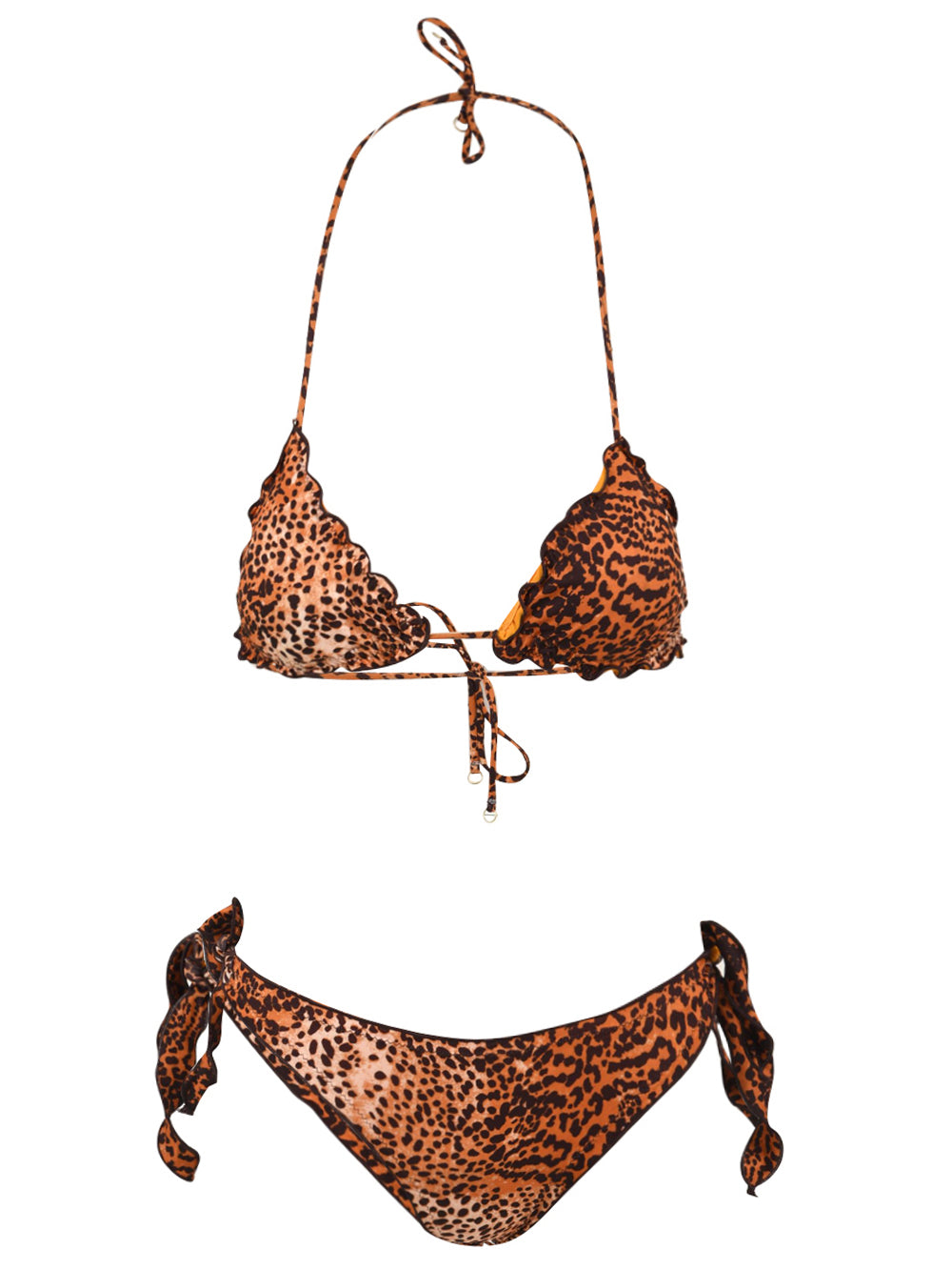 Ajoutez une touche sauvage à votre look de plage avec le maillot de bain triangle imprimé animalier pour femme de Me Fui ! Le tissu lycra garantit un ajustement confortable et parfait tandis que les nœuds réglables et les bords froncés du haut et du bas offrent une touche de féminité. L'imprimé animal vous fera vous sentir confiant et audacieux !