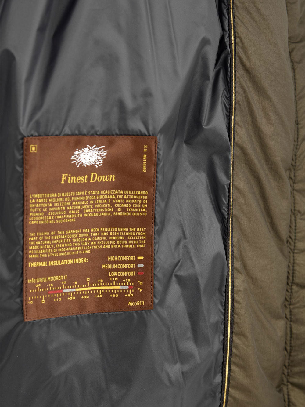 Couette remplie de duvet Modèle femme Nevola-Tcn signé Moorer . Doté d'un large col rembourré, d'une fermeture zippée centrale et de deux poches latérales à rabat. Un vêtement chaud et polyvalent, idéal pour compléter n'importe quel look hivernal !