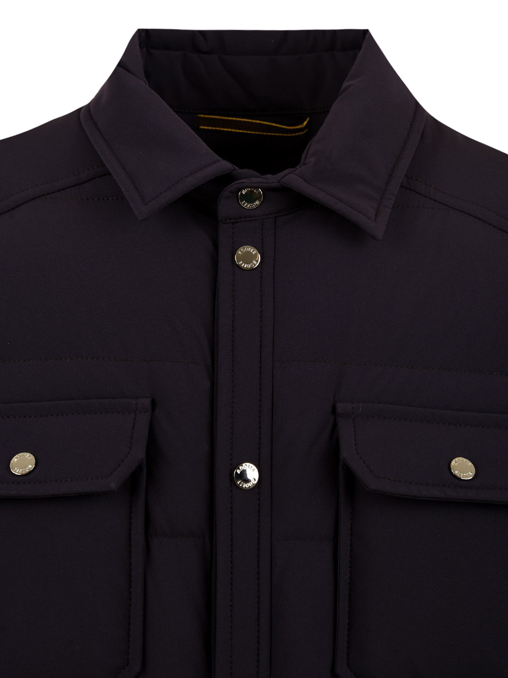 Scopri l'eleganza artigianale del giubbotto MooRER. Realizzato con cura in un blu intenso, questo capo unisce tradizione sartoriale e innovazione, caratterizzato da un tessuto bielastico resinato che respinge l'acqua. L'imbottitura in piuma d'oca, trapuntata a boudin, aggiunge comfort e calore, perfetto per l'uomo moderno che apprezza l'eccellenza italiana.
