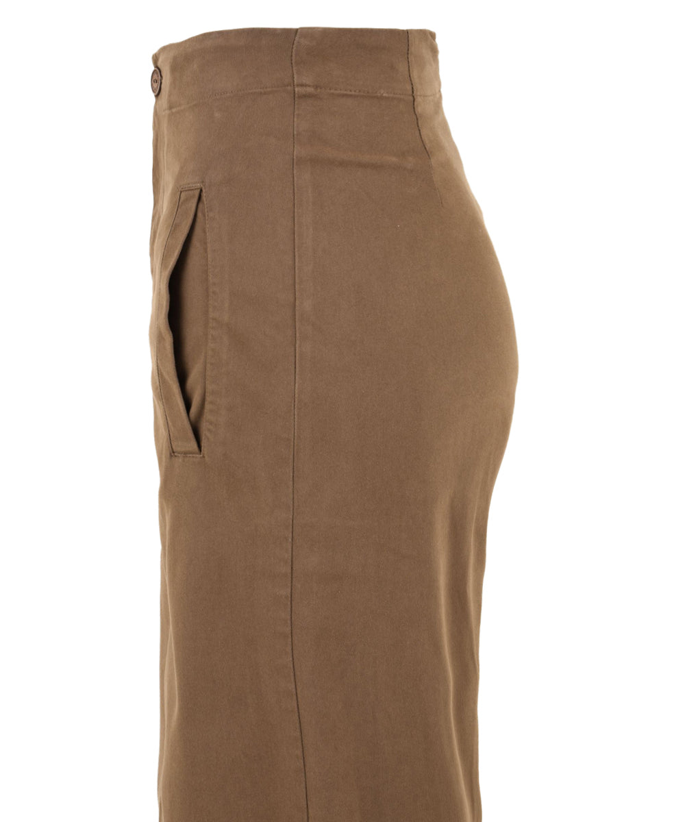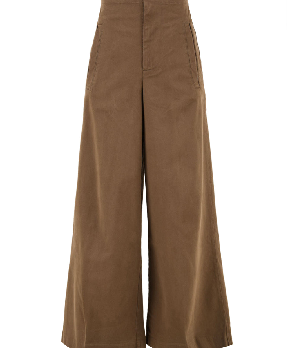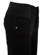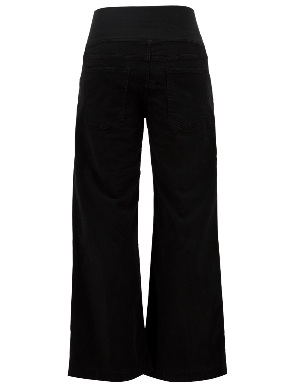 Pantalon femme noir de European Culture en coton doux. Fermeture zippée et boutonnée, bas évasé pour un look tendance. Parfait pour l'automne.