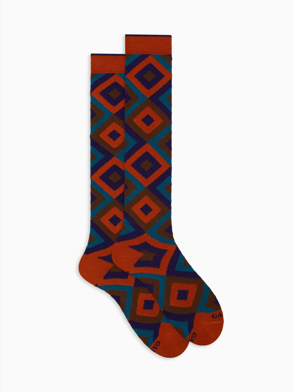Scopri le calze lunghe fantasia rombi Gallo, un accessorio elegante e originale che unisce la tradizione italiana a uno stile unico. Realizzate in morbido cotone di alta qualità, queste calze offrono comfort e personalità, un must-have per l'uomo che ama distinguersi. Perfette per aggiungere un tocco di colore al tuo guardaroba.