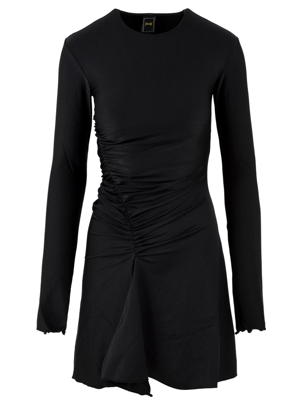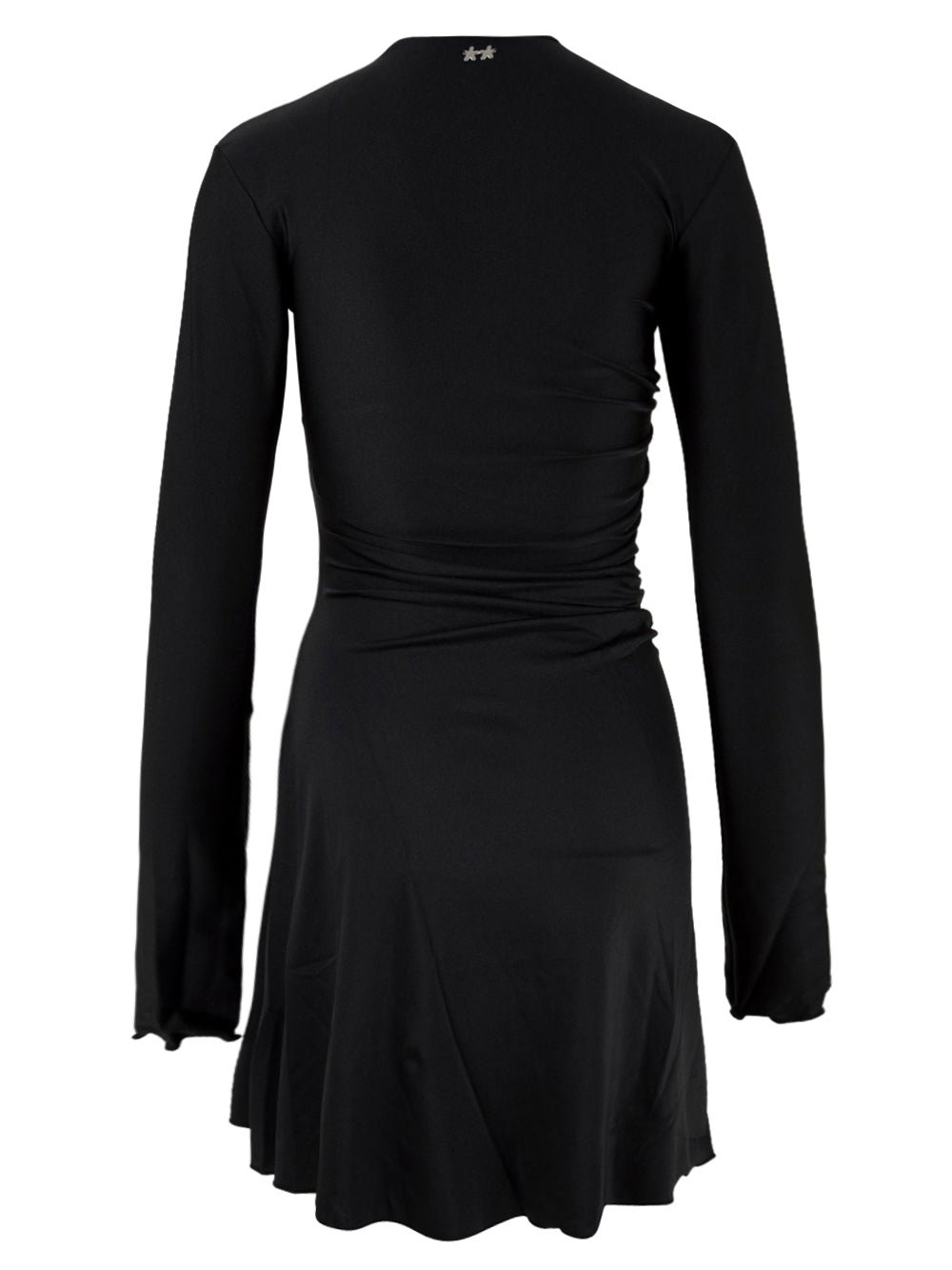 La robe courte et évasée élégante pour femme de Effek . Confectionnée en tissu élastique brillant et dotée d'une silhouette évasée et d'un col rond à manches longues, cette robe donne un look chic et tendance toujours à la mode. Choisissez de briller avec ce vêtement !