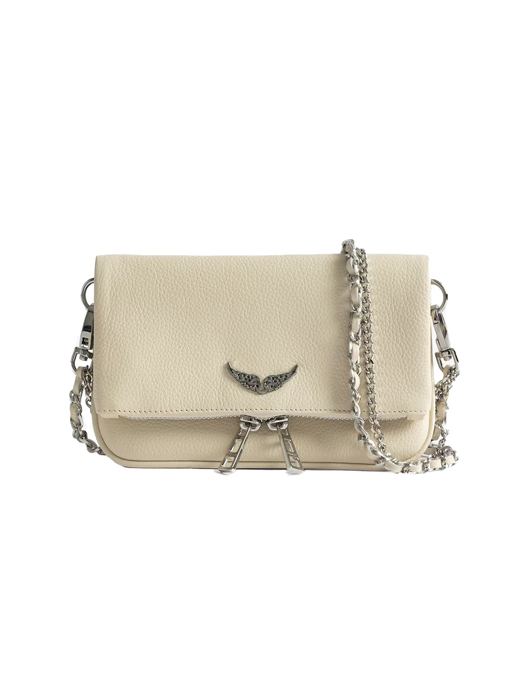 La Pochette Rock Nano Grained Leather Swing Your Wings di Zadig&Voltaire è un accessorio perfetto per la donna che vuole distinguersi. Questa pochette bianca, grazie alla sua capacità di adattarsi sia a look eleganti che casual, diventa il complemento ideale per un outfit glamour. Da indossare con un abito dal taglio classico o un completo colorato, aggiunge un tocco di charme e originalità. Le catene rimovibili offrono ulteriore versatilità, perfette per personalizzare il tuo stile.
