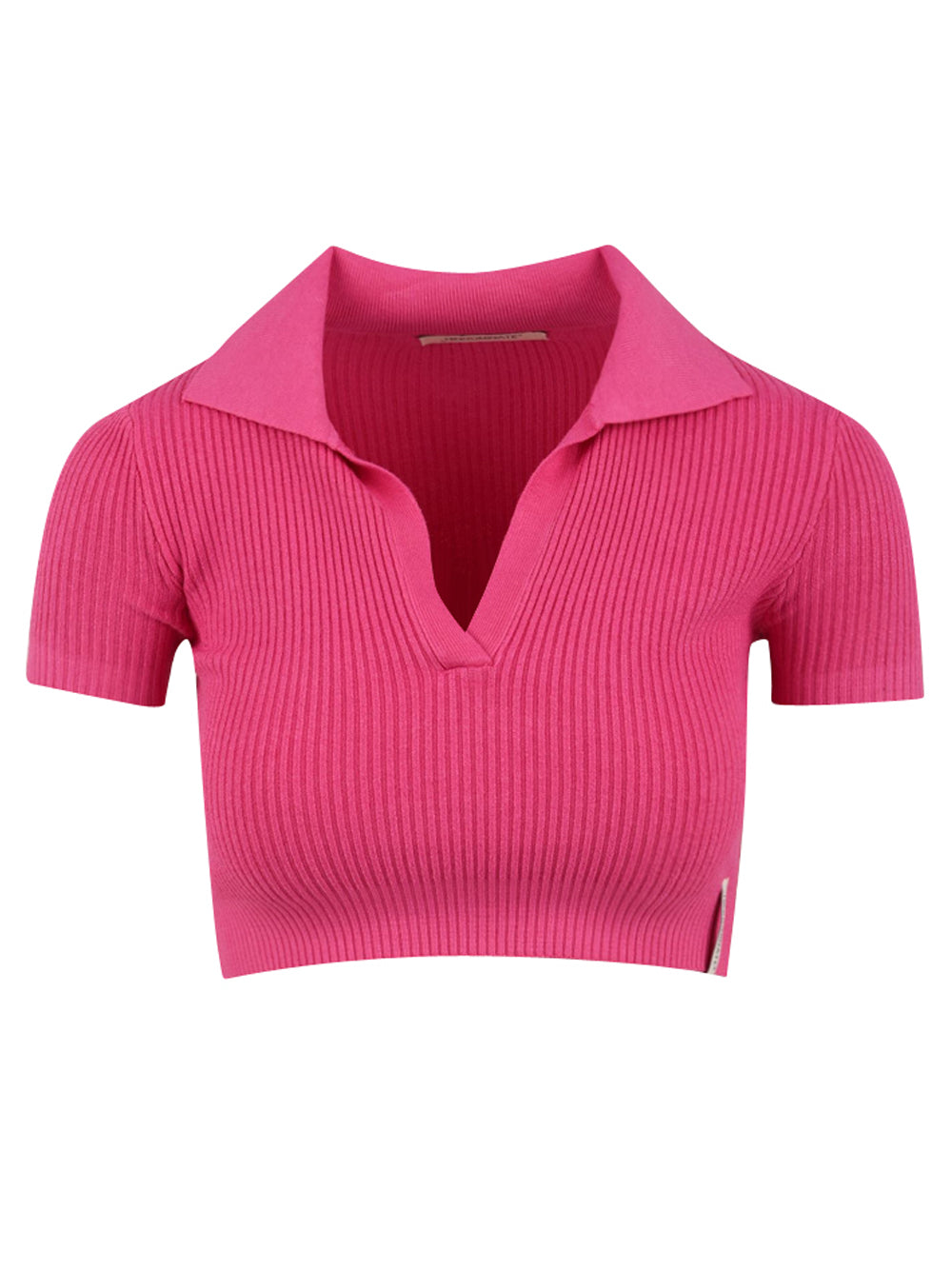Ce polo pour femme Hinnominate est parfait pour un style décontracté et élégant. Les manches courtes et le design court apportent une touche de modernité, tandis que le motif côtelé et l'encolure et le col larges ajoutent une touche de raffinement. Idéal pour un look polyvalent et sophistiqué.