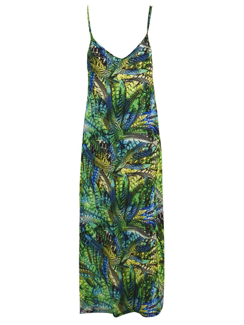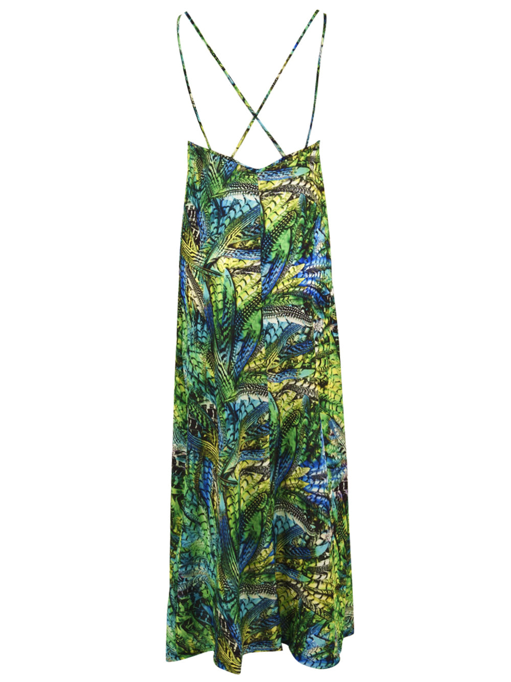 Abito Donna firmato 4Giveness lungo realizzato in morbido tessuto a fantasia. Presenta un incrocio sulla schiena e delle spalline sottili per un look femminile e fresco. Adatto per la tua estate!