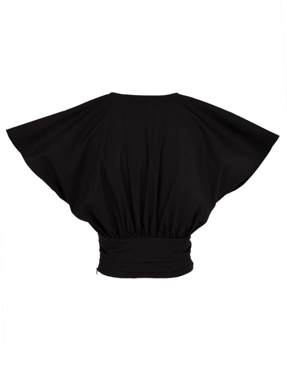 La Blusa da donna nera è composta al 95% di cotone e al 5% di elastan, garantendo comfort e vestibilità regolare. Con scollo a V e bustino arricciato in vita, dona un tocco di femminilità. Pratica grazie alla zip laterale e dallo stile casual, è perfetta per ogni occasione.