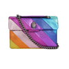 Borsa Kensington L Kurt Geiger dona un tocco di eleganza e modernità al look quotidiano. Realizzata con una texture di pelle di mucca a grana di ciottolo finemente laminata e un design con l'iconico motivo a strisce arcobaleno, questa borsa si distingue per la sua unica testina d'aquila ornata da cristalli color arcobaleno e occhi in cristallo nero.